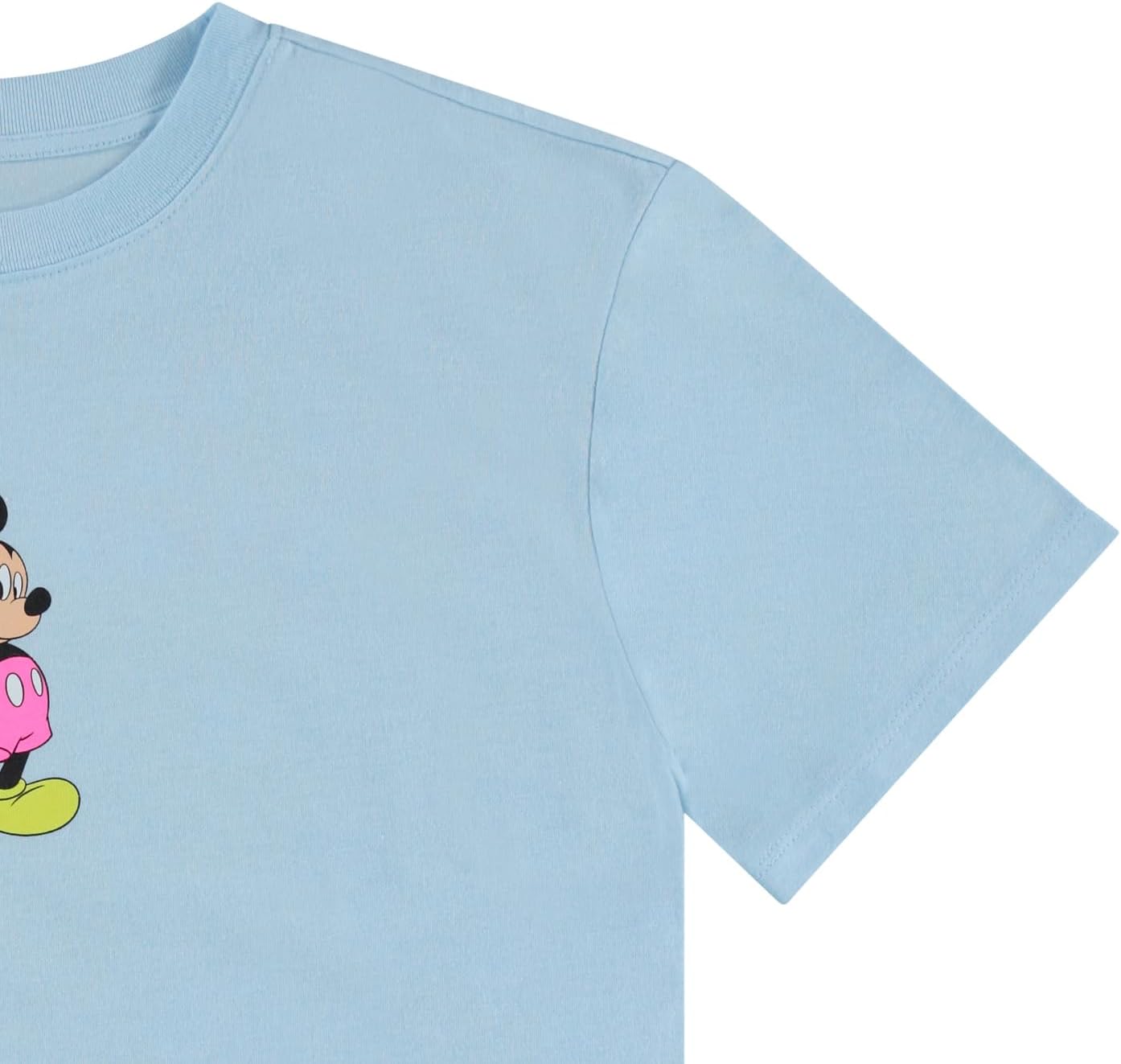 Favorite Characters Get your fashion on with a t-shirt featuring Minnie Mouse and Mickey Mouse. Each tee has a colorful print with your favorite Mickey Mouse and Minnie Mouse poses.Mickey Mouse Mickey's most widely known traits are his wholesomeness and charisma. In contrast to this, Mickey is also rather mischievous; a scrappy, free-spirited rebel with a head full of curiosity, optimism and slight arrogance, Mickey has a habit of finding himself in a wide array of self-inflicted trouble—sometimes comical, sometimes highly consequential. This is shirt is great and perfect for that Mickey fan!Officially Licensed Disney MerchandiseOfficially licensed apparel and high-quality prints on this Disney Mickey Mouse t-shirt make it the perfect gift for women everywhere. Whether it be for and achievement, Halloween, Christmas or a birthday.Fashion TopShort sleeves and a classic crew cut neck make this comfortable graphic tee, one women will love to wear.Juniors SizesPrints are available in juniors clothing sizes: Small, Medium, Large, and X-LargeMickey Mouse Shirt For womenOfficially Licensed100% CottonMachine WashableSizes: Small, Medium, Large, X-Large