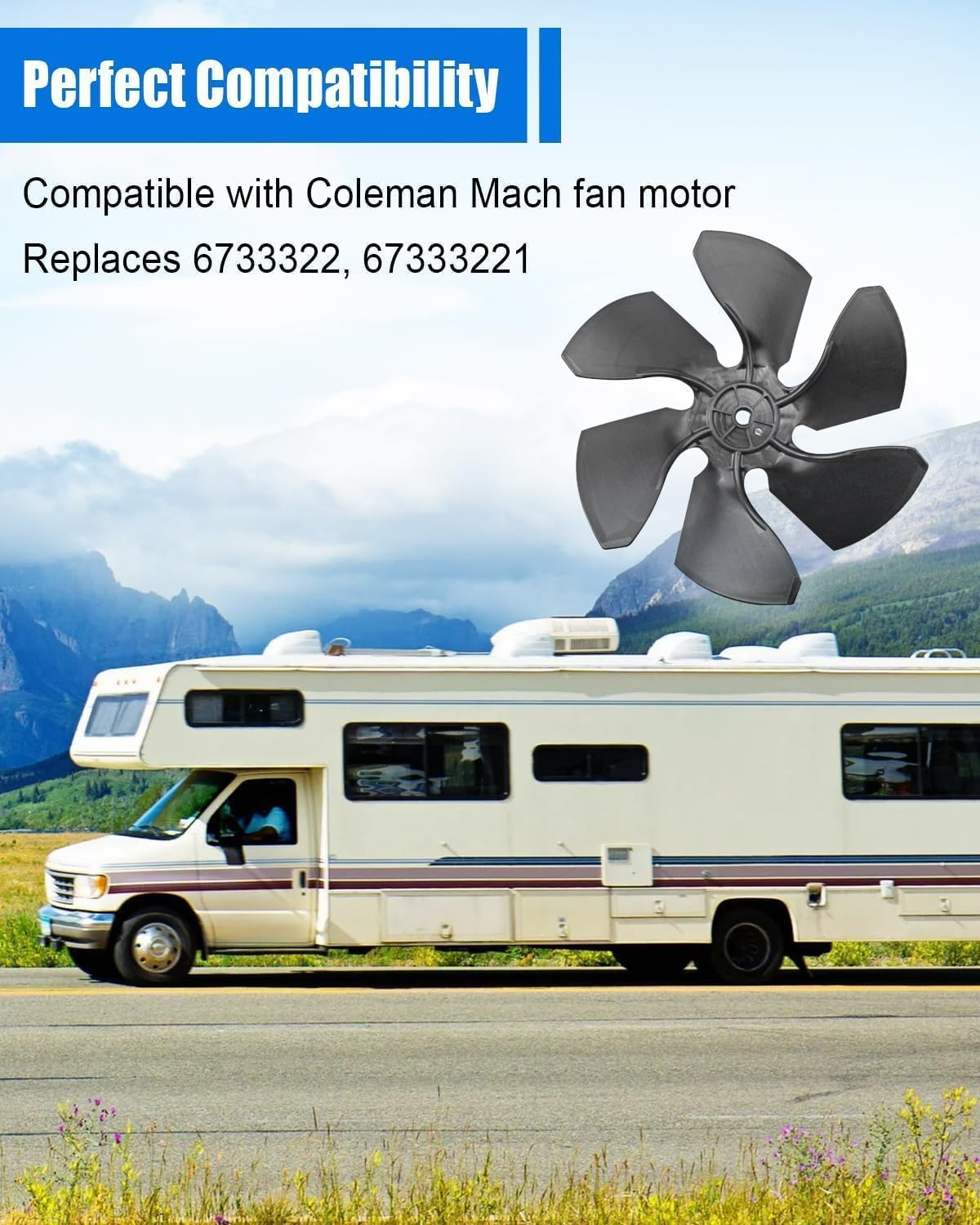 Compatible Models:Compatible with 48203/ 48204/ 48207/ 48208/ 48213/ 48253/ 48254/ 48257/ 48263/ 48264/ 48268/ 7332/ 7333/ 7335/ 7373/ 7433/ 7533/ 7632/ 7633/ 8332/ 8333/ 8335/ 8373/ 8433/ 8473/ 8533/ 8534/ 8535/ 8632/ 8633/ 6701/ 6702/ 6703/ 6721/ 6722/ 6723/ 6731/ 6732/ 6733/ 6734/ 6736/ 6741/ 6742/ 6743/ 6744/ 6745/ 6746/ 6747/ 6749/ 6757/ 6759/ 6767/ 6769/ 6770/ 6777/ 48004/ 48008/ 48014/ 48054/ 48058/ 48064/ 48068/ 7535/ 8534/ 8535Solving Problem:1. Fan blade can optimize air flow, reduce energy consumption and improve energy efficiency2. RV conditioner fan blade can reduce noise during operation3. Replacement fan motor part can reduce the frequency of failures and maintenance, and improve the overall user experience and safety of the RVPackage Include:1 pcs 6733-3221 camper rv conditioner fan blade