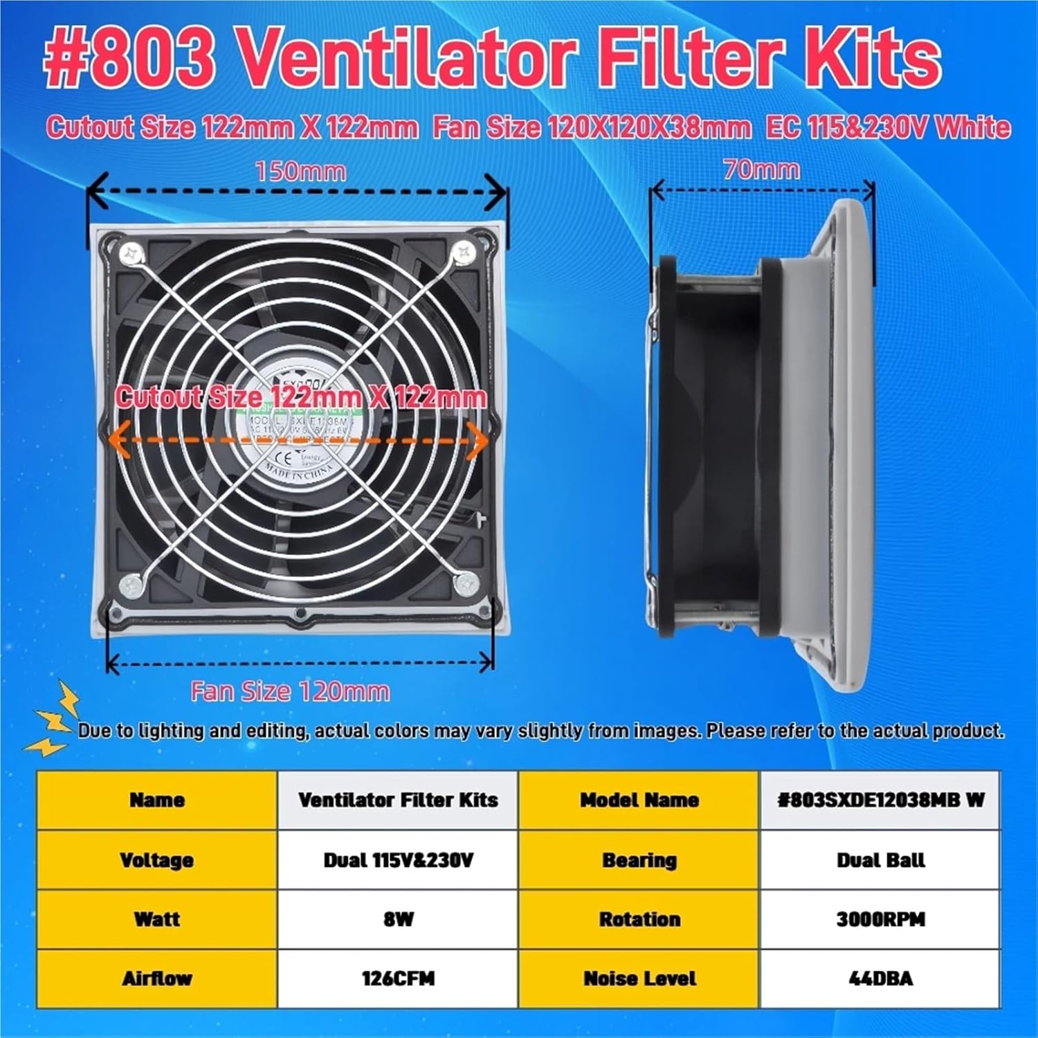Exhaust FansConstruction: Features a louvered vent made from ABS material, ensuring longevity and resistance to environmental factors.Enhanced Protection: Equipped with a sealing ring, our cooling fan kit offers superior dust and waterproofing(IP44) capabilities, keeping your cabinet's interior clean and dry.High-Efficiency Motor: Powered by a pure copper motor, this fan delivers exceptional airflow, efficiently cooling your equipment to maintain optimal performance.Stable Operation: Utilizing dual ball bearings, the fan operates smoothly and steadily, reducing vibration and noise for a quieter working environment.Versatile Application: Ideal for use in various types of cabinets, including server racks, electrical enclosures, and control panels, our cooling fan kit is designed for easy installation and reliable cooling.BlackWhite:==========Hign-concerned Chemical : NonePower Interface : 2pinRGB Support : NO RGBMaterial : PlasticThickness : 70mmType : Server FanModel Number : #803Origin : Mainland