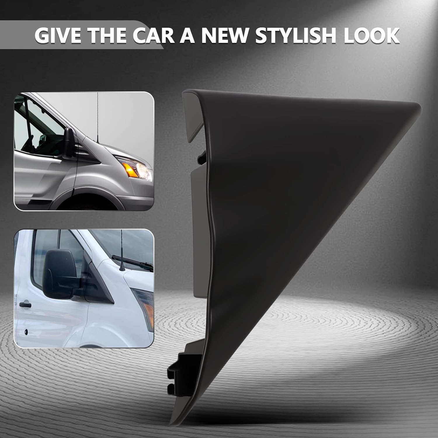 Product specifications: Color :Black Exterior Finish: Machined Material: Plastic Style: Left Side Auto Part Position: Front Left Upper Replace OE number: CK4Z-16003-CA CK4Z16003CA Compatible with: Transit-150 2015-2021 Transit-250 2015-2021 Transit-350 2015-2021 Transit-350HD 2015-2021 Packaging: 1×Fender Pillar Trim Mirror Corner Molding