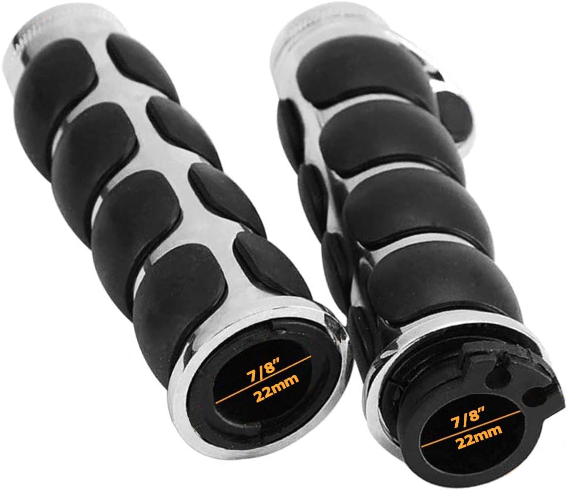 Please check the handlebar size before purchase! Fit Types: universal for most of motorcycles and motor bikes with 7/8” (22mm) handlebars. Not Fit Types: 08+ Harley Davidson motorcycle models with electrical throttle and the 1-1/4" handlebar(on throttle side). Specification: Color: black Inner diameter: 7/8” (22mm) Material: high quality aluminum +rubber lining Combining great style and comfort With cable throttle control on the right grip Package Included: A pair of motorcycle hand grips (left and right)