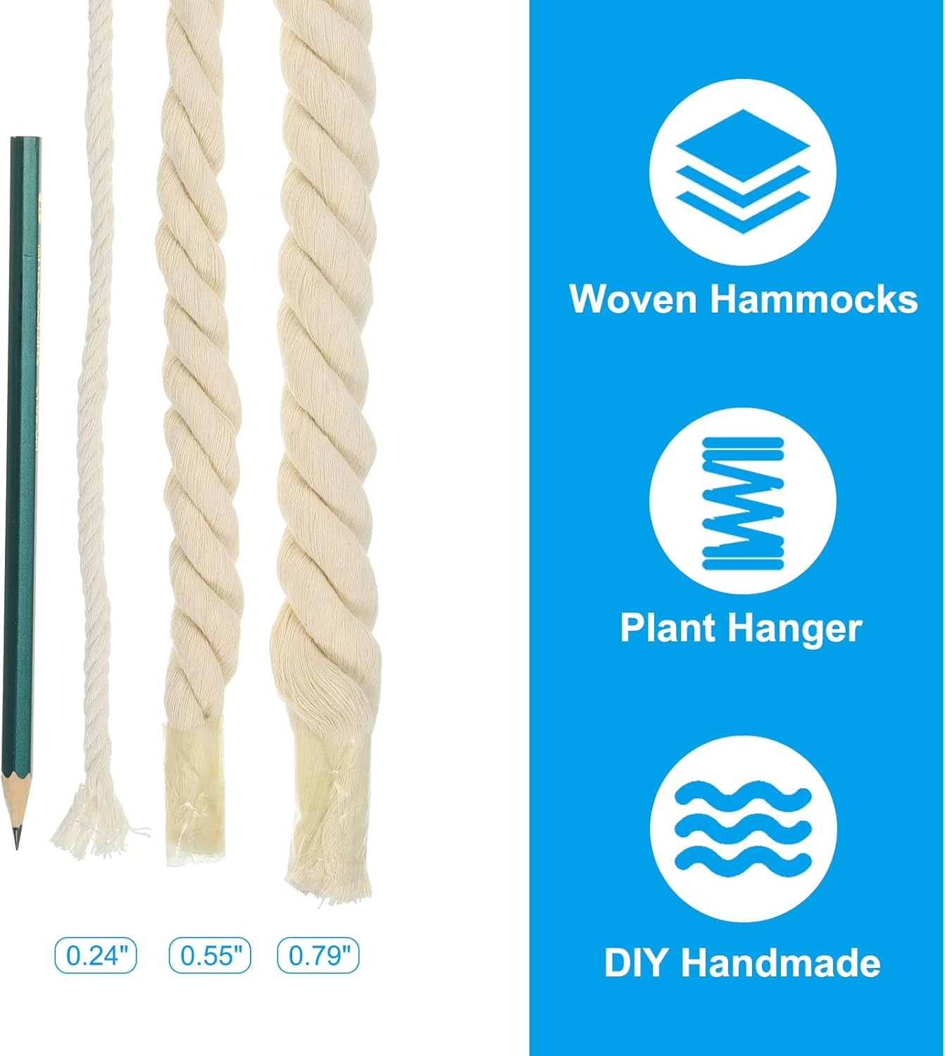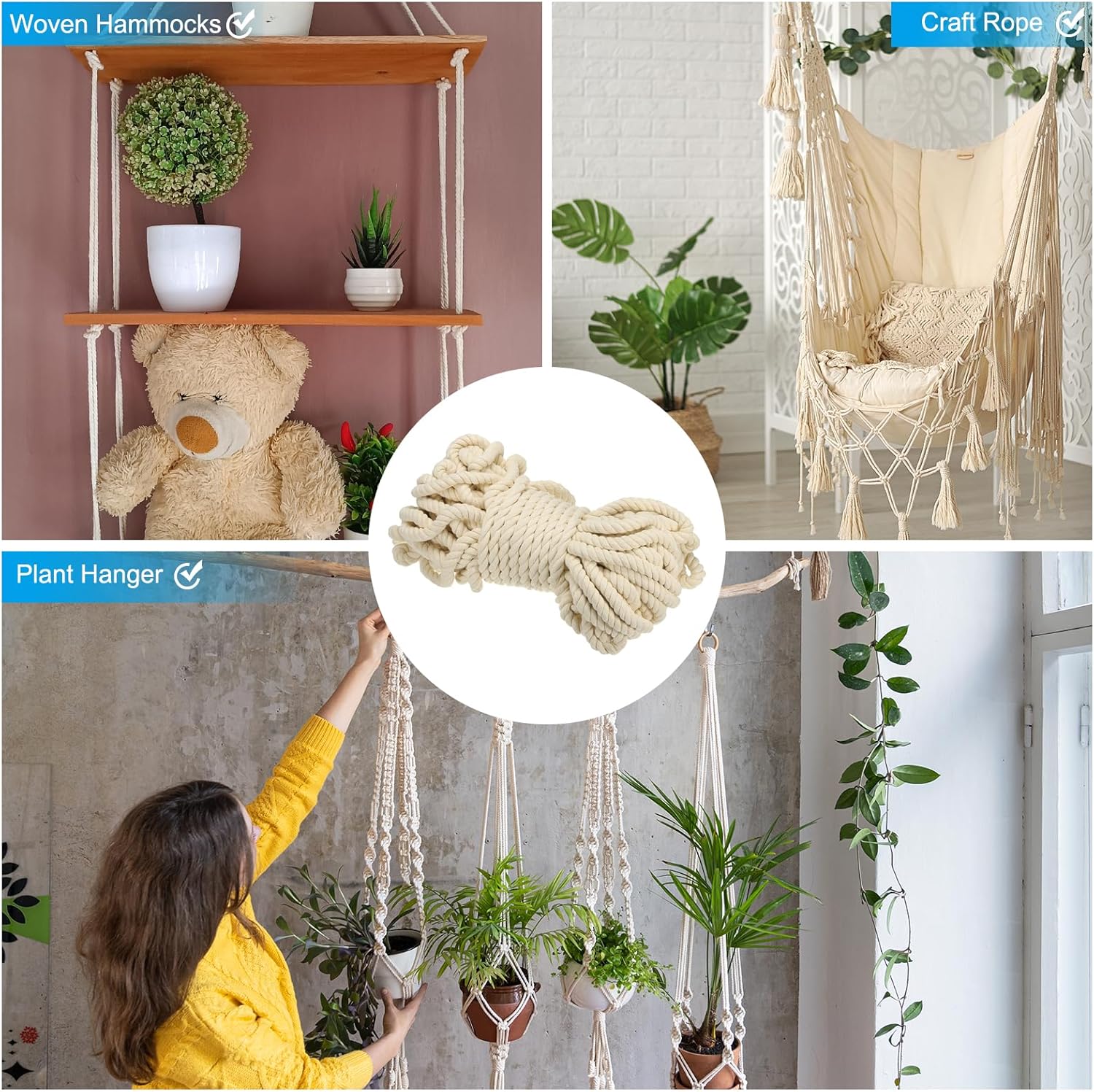 Craft cotton rope is widely used outdoors and indoors, such as woven hammocks, clotheslines, window frame ropes, slings, seat belts, mobile ropes, flag ropes, etc. The flexible cotton rope is also very suitable for DIY handmade, you can use it to make woven home decorations, plant lace, event decorations, etc.SpecificationColor: BeigeMaterial: CottonSize: 15 m x 20 mm / 50ft x 0.79" (L*W)Packing List: 1 x Craft cotton ropeAdvantageCraft cotton rope has a solid structure, is durable and not easy to wear. The cotton rope is machined, the solid braided design is soft, the rope body is round, smooth and uniform, the line is tight, and it can be used for a long time.InstructionYou can easily cut to the length you need, this craft cotton rope is not suitable for use as a wick.Note: Due to differences in monitors, there may be slight differences between the actual object and the picture. Please choose the right size before purchasing.