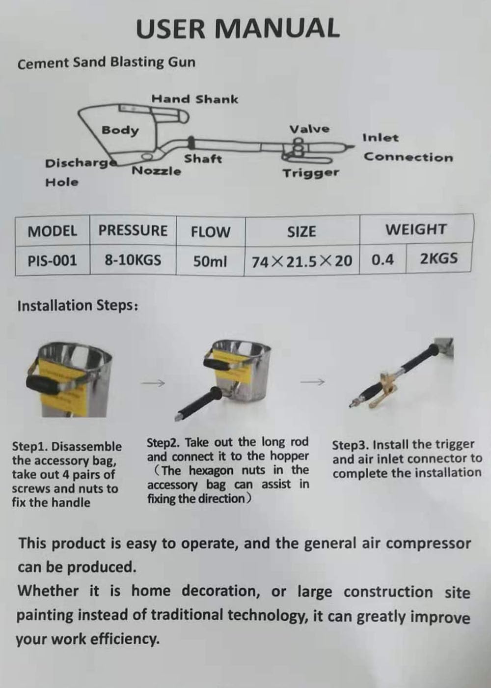 | Style | Gun-shaped Cement Mortar Sprayer |