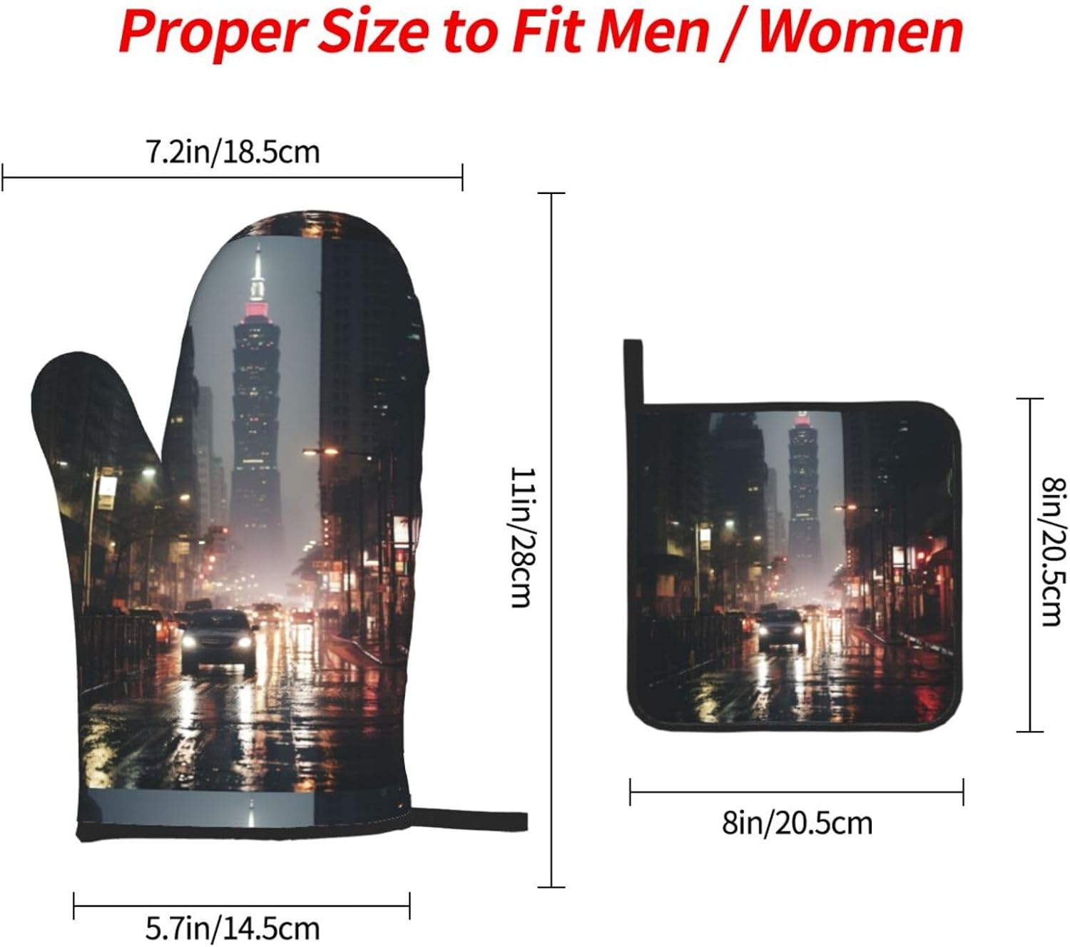 upgrade your kitchen safety with this Taipei Scenery print microwave gloves, oven mitts and pot holders sets. crafted from water repellency polyester and heat-resistant fabric, these kitchen baking three piece set offers reliable protection for hands while handling hot items. the double-layer waterproof design ensures easy cleaning after use. suitable for various cooking scenarios including microwave ovens, conventional ovens, stovetop cooking, and outdoor grilling. the side hanging rope allows convenient storage when not in use. the thick construction provides excellent heat insulation without compromising dexterity. this unisex kitchen essential combines functionality with practical design for everyday cooking needs. the heat-resistant gloves maintain comfort while offering superior protection against burns. an essential addition to any modern kitchen setup