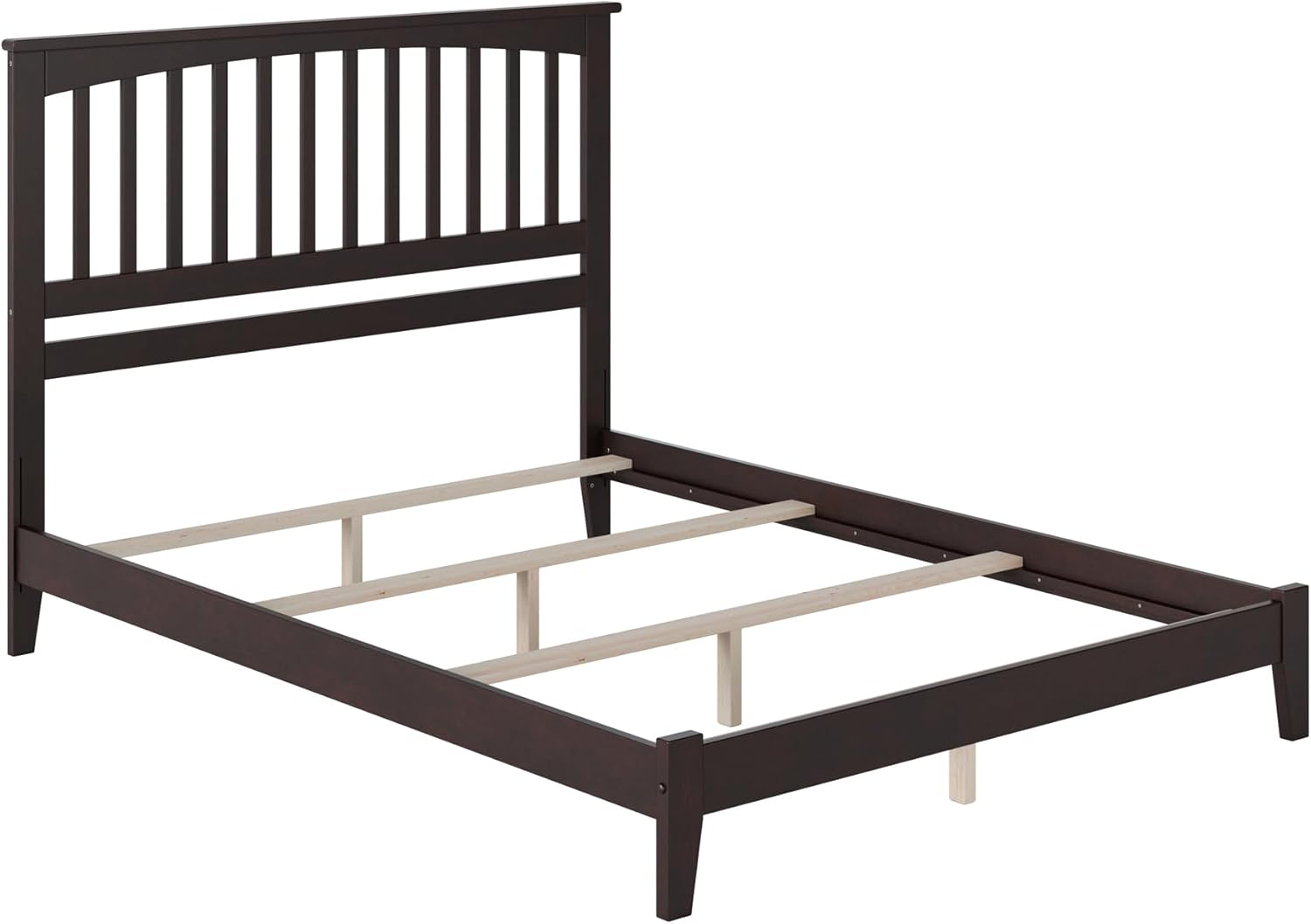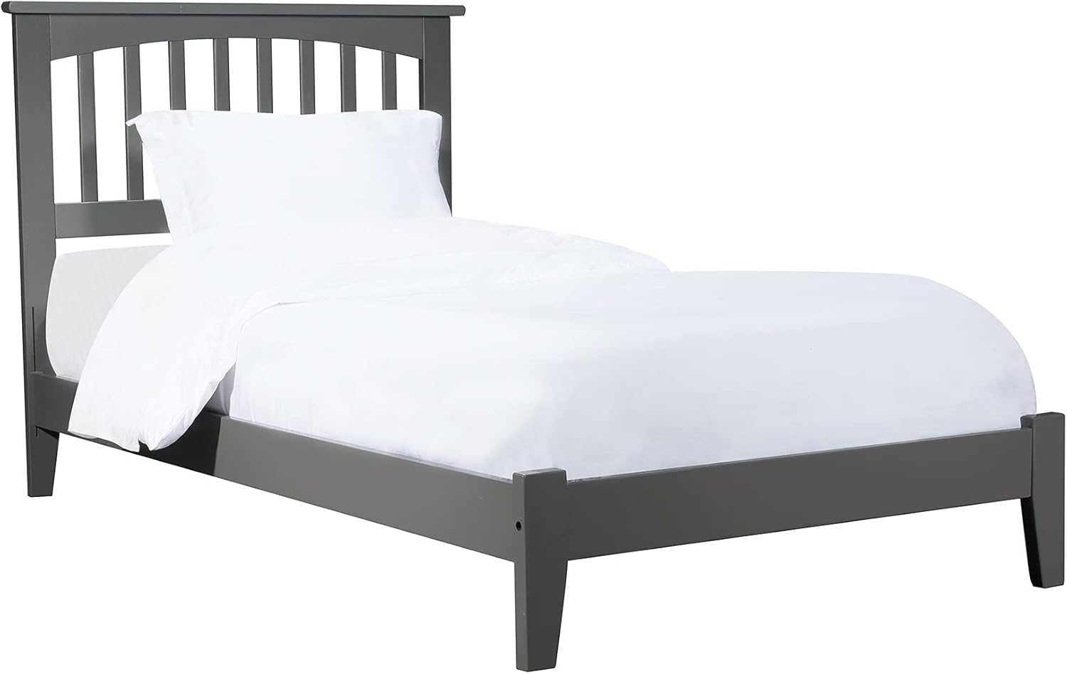 Introducing The Mission Solid Wood Foundation Bed Frame – a timeless blend of classic craftsmanship and modern convenience. Crafted with precision, this stunning bedframe exudes true Mission style, offering an elegant addition to your bedroom. Crafted from high-quality solid wood, The Mission is built for durability and longevity. Available in Twin XL, Twin, Full, Queen, or King sizes, and a range of beautiful colors, including Espresso, White, Walnut, Light Toffee, and Grey, you can easily find the perfect fit for your style and decor. This bed requires a foundation or box spring to be mattress ready. The framed slatted headboard adds a touch of sophistication to your bedroom, making it a focal point that enhances the overall aesthetic. Inspired by classic Mission-style design principles, this bedframe pays homage to traditional craftsmanship while incorporating modern functionality. Elevate your sleep experience with The Mission Solid Wood Foundation Bed Frame, where style meets substance – a true mission accomplished for your bedroom upgrade!