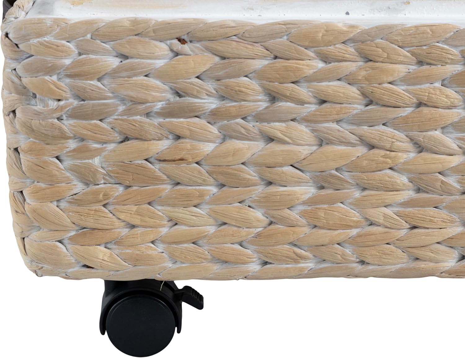 Store away your extra blankets or clothing with our slim wheeling handwoven basket. Decked out a lid and long rectangular shape, this basket is perfect for organizing items under your bed. Made of a wooden frame and hyacinth weaving, this storage bin adds a touch of bohemian and coastal decor to any home.