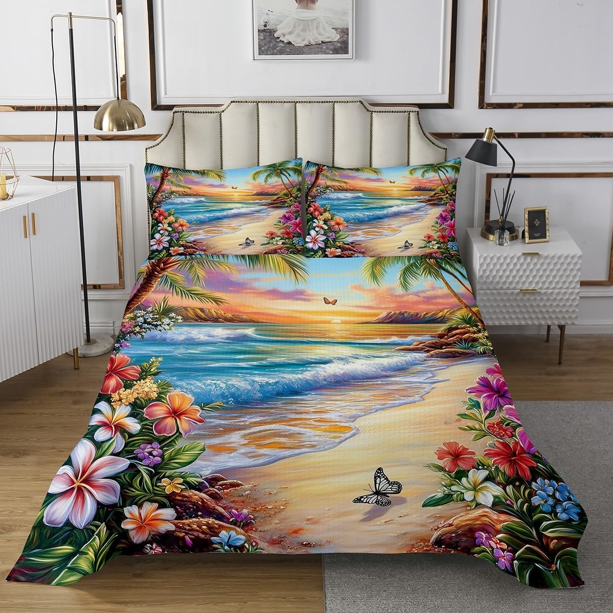 Present and blessings: Makeover your bedrooms every season with our bedspread sets. Suitable for your room,girls boys youth room, master bedroom. Also a present idea for your mom, dad, sister, brother, grandma, wife, husband, daughter, son and all other beloved. Size Information: 1 Twin size quilted bedspread (68"W X 90" L) and 1 quilted pillow case (30"W X 20"L). 1 Queen size quilted bedspread (90" W X 90"L) and 2 quilted pillow cases (30"W X 20"L). 1 King size quilted bedspread (104"W X 90"L) and 2 quilted pillow cases (36"W X 20"L). Useful and practical: A luxurious product for homes, dorm rooms, hotels, guest rooms. Practical to use for being polyester, feels like cotton which is super soft and breathable. No chemicals used, No dye substance harming the health of you or your family. Unique design: Vivid Colors won't fade thanks to new 3D digital printing methods. These unique designs match well with various color palettes of your rugs, curtains, headboard, furniture, and all other decor accessories. Personalized: As manufacturers of digital printed home textiles, we follow current trends and bring you the latest home fashion. Either a present to your family or friend, relative or boyfriend girlfriend, or to yourself, the item should be interesting and authentic. Note: The Bedspread and Pillow cases are printed on the Front Side Only, the back of them are white colored. Comforter is Not Included in the set.