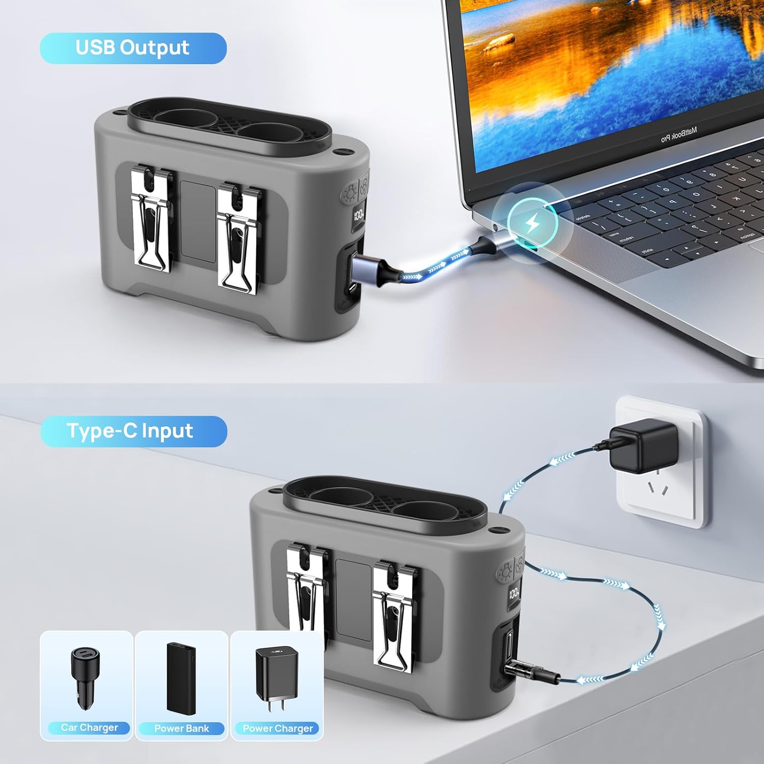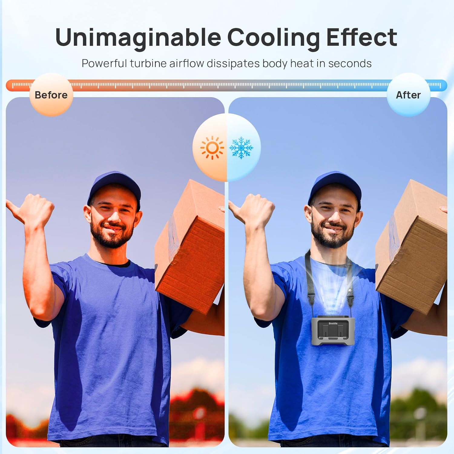 Onnilife 14500mAh Portable Waist Fan Clip on Wearable Belt Personal Fan Rechargeable Battery(Gray)