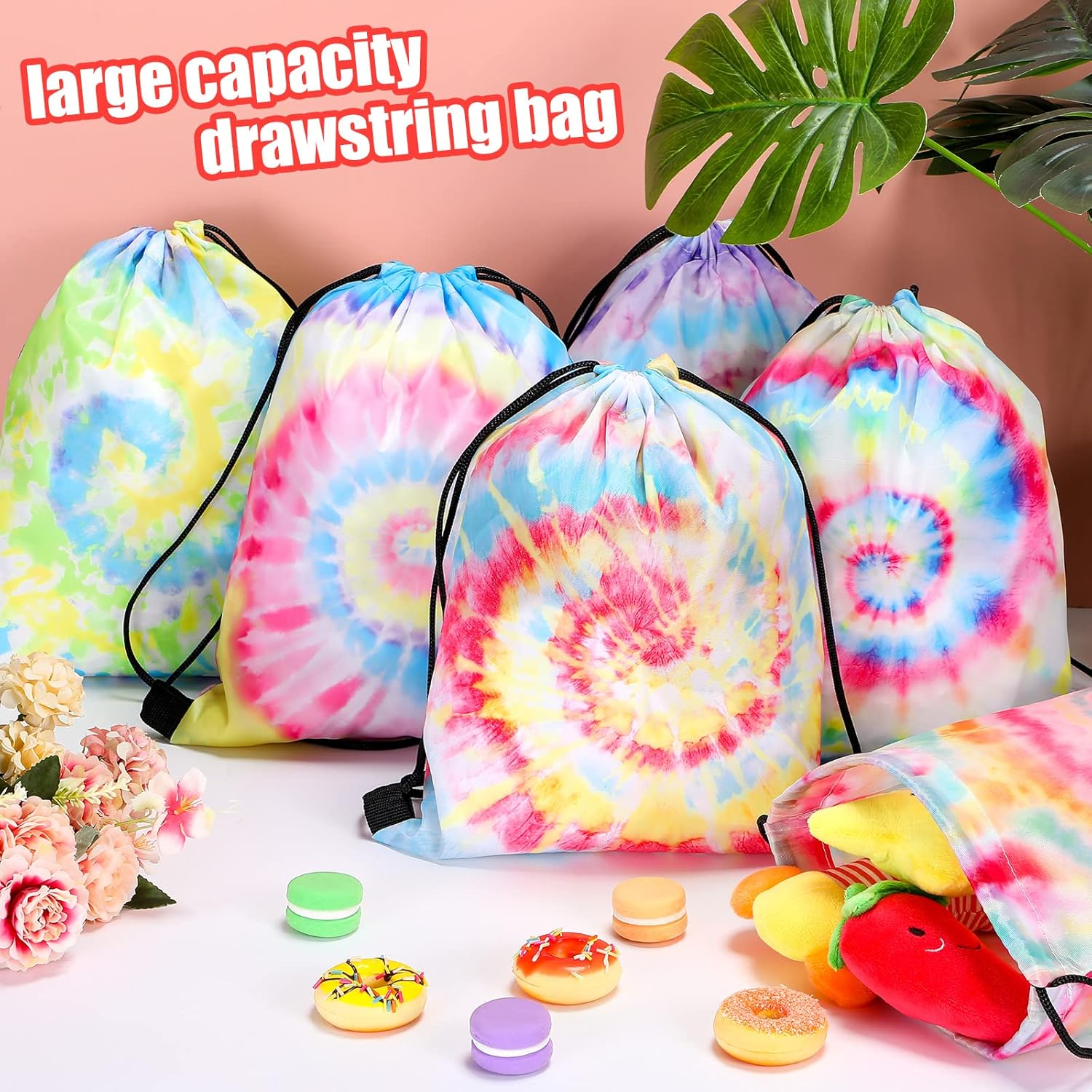Features: Drawstring design: Our party favor gift bags are designed with drawstring, convenient for you to open and close. Reusable and washable, you can use them with confidence. Practical gift choice: You can share the tie dye party favor bags to your family members, mates, relatives, neighbors, colleagues and more, who will be delighted to receive such delicate and lovely backpacks, expressing your care. Specifications: Material: polyester fiberColor: colorfulSize: approx. 10 x 12 inchesPackage includes: 42 x Tie dye drawstring backpackNotes: Manual measurement, please allow slight errors on size. The color may exist a slight difference due to different screen displays. Wire winding may be dangerous, please stay away.