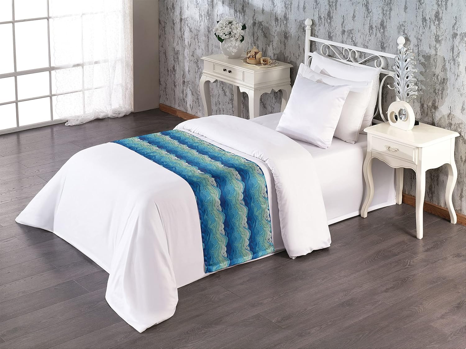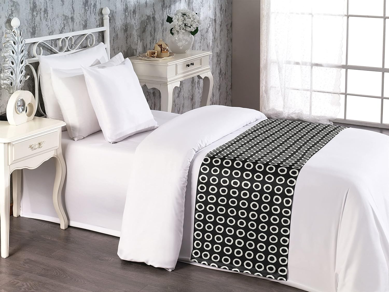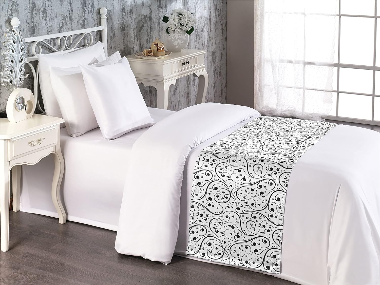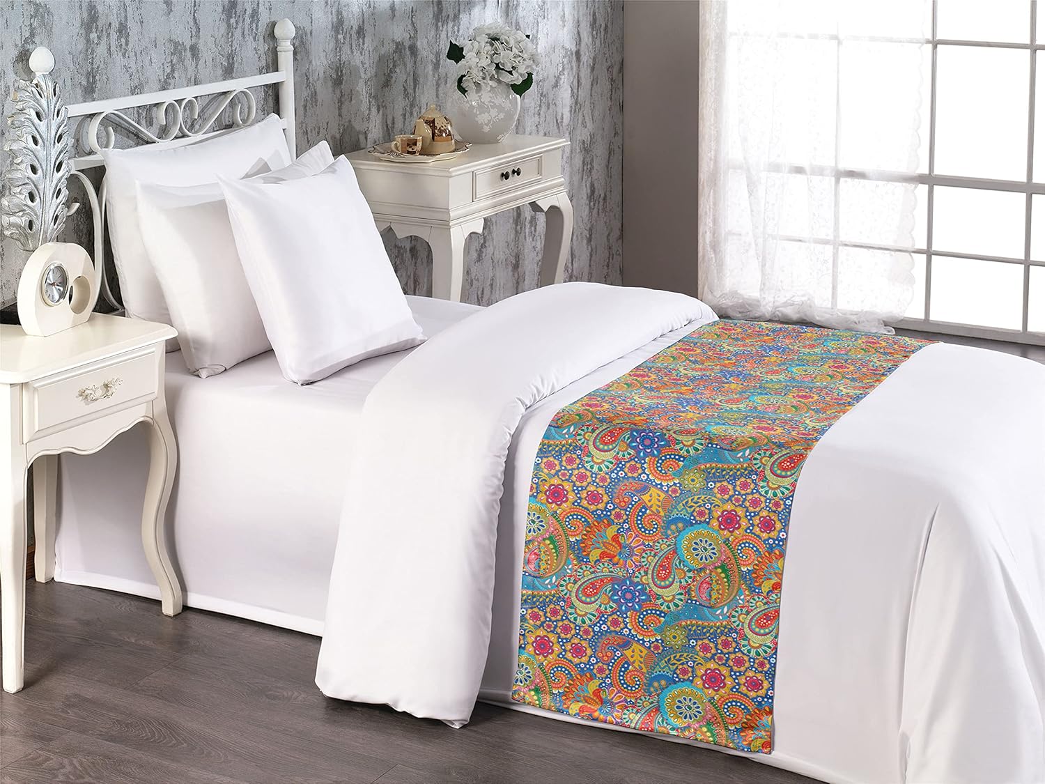 Measurements - Runner is 104 inches wide & 19.5 inches long. Shams: 20 inches square. Made in Turkey. Made from - Cover runner scarf and shams are %100 high quality satin polyester fabric. Durable. Features - Protect your bed from everyday dust and stains. For bedrooms, hotel rooms or guestrooms. Machine washable - On cold cycle. Creates decorative accent for bedroom. Comfortable for your pets. Printed - With state of the art digital printing technology. Long-lasting bold colors & clear image. Decorate your room with these printed bed runners and protect your bed from dust and everyday stains, too. It's high-quality 100% satin polyester just for your comfort. This sturdy material is also soft to touch. It's easy to take care of: machine wash it on cold/delicate cycle and tumble dry on low/medium heat. Change the look of your plain bed quickly with these colorful printed runner scarves. Set it on the foot of your bed or use it on your couch and bring a cozy and new look for your living room. It's also a decorative piece for hotel rooms, guesthouses, or dorm rooms. Create a high-class hotel room look just for yourself. You can design a great wedding room with little but important details like this bedding runner. Thinking outside of the box is important! So; you can also create a different look for your office or loft. You can give these bed scarves as a Christmas, birthday, wedding gift, mother's day, or house warming gift. It can be a great present for your mother, father, newly married friends, grandmother, aunt, uncle. The digital images we display have the most accurate color possible, however, due to differences in computer monitors, we cannot be responsible for variations in color between the actual product and your screen. Due to manual measurement, please kindly allow a 1-2 cm discrepancy.