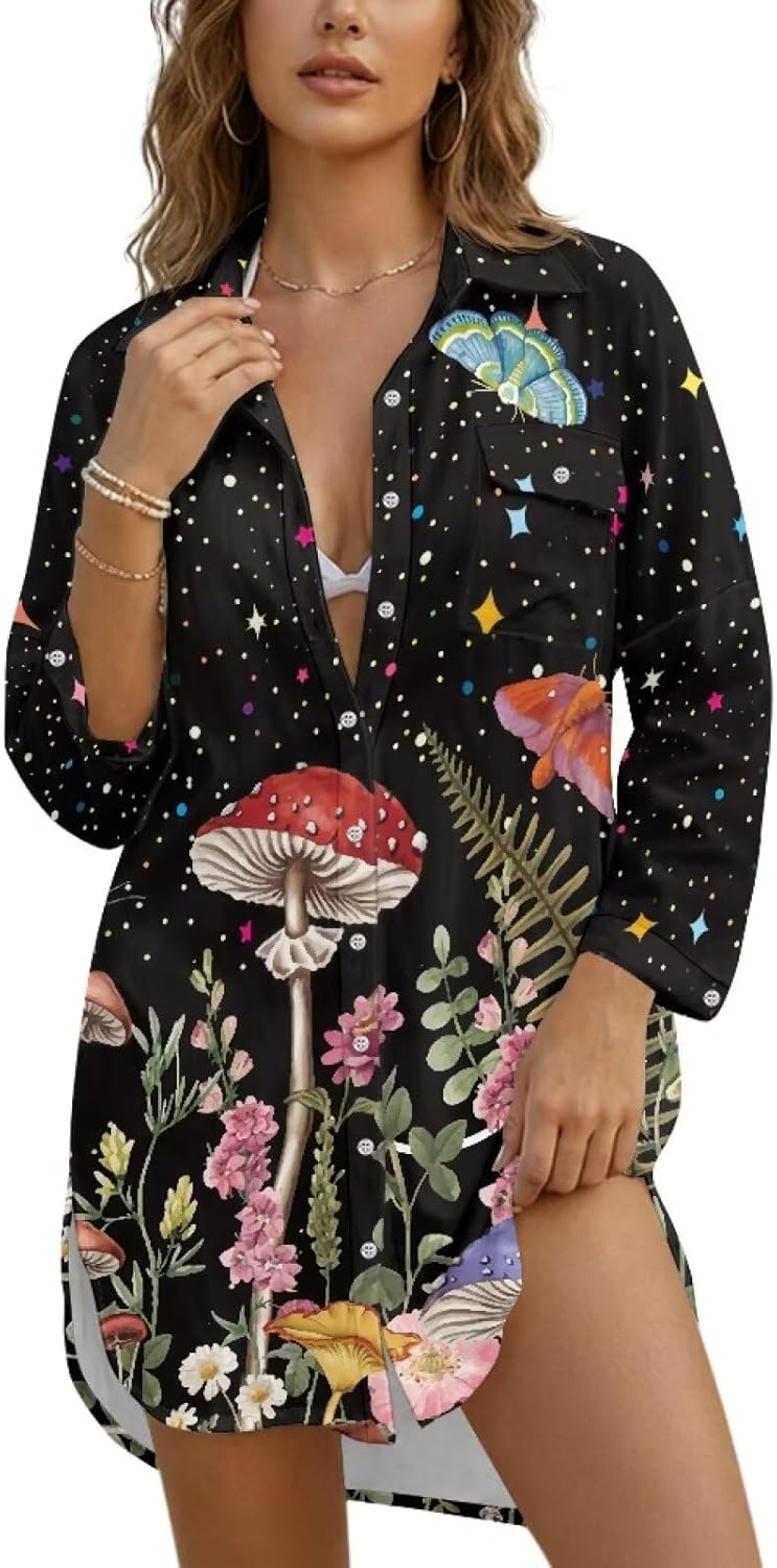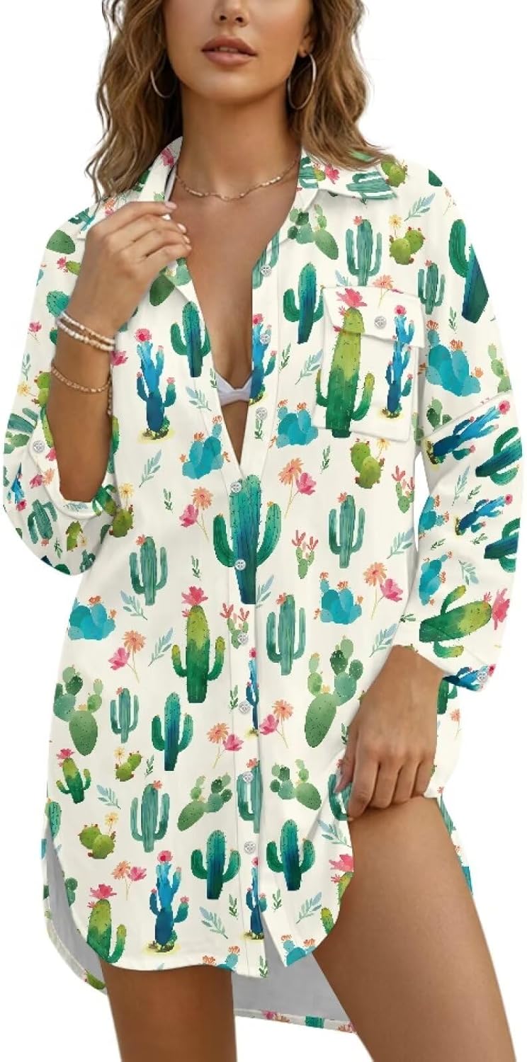 Oamsistay Women Swimsuit Coverup Shirt Dress Button Down Bathing Suit Cover Up Beach Vacation Outfits Womens Bathing Suit Cover Ups Bikini Swimsuit Coverup Beach Dress Shirt Elevate your beach style with this women's oversized swimsuit cover up, the perfect blend of comfort, versatility, and chic design for all your summer adventures. Whether you're heading to the pool, lounging on the beach, or enjoying a resort dinner, this button down beach shirt delivers effortless elegance and practicality. Made from lightweight, breathable fabric, this swim cover up keeps you cool under the sun while offering gentle sun protection. The loose, relaxed fit ensures full coverage over your bikini or one-piece swimsuit, with soft, skin-friendly material that feels comfortable all day long. The classic button-front design allows you to wear it open as a casual cover up or closed as a stylish shirt, making it ideal for transitioning between water activities and everyday outings. Featuring long sleeves for added coverage, this white swimwear cover up is perfect for tropical vacations, pool parties, cruises, and daily summer wear. The quick-dry, wrinkle-resistant fabric saves you time on care—simply machine wash and tumble dry for long-lasting use. sturdy stitching maintains its shape and color, so you can enjoy this essential piece season after season. Versatile, fashionable, and functional, this women's beach shirt complements any swimwear style and suits various occasions. From beachside strolls to vacation outings, it combines practical benefits with a modern, minimalist look. Upgrade your summer wardrobe with this must-have swim cover up that balances comfort, style, and performance for every sunny day.
