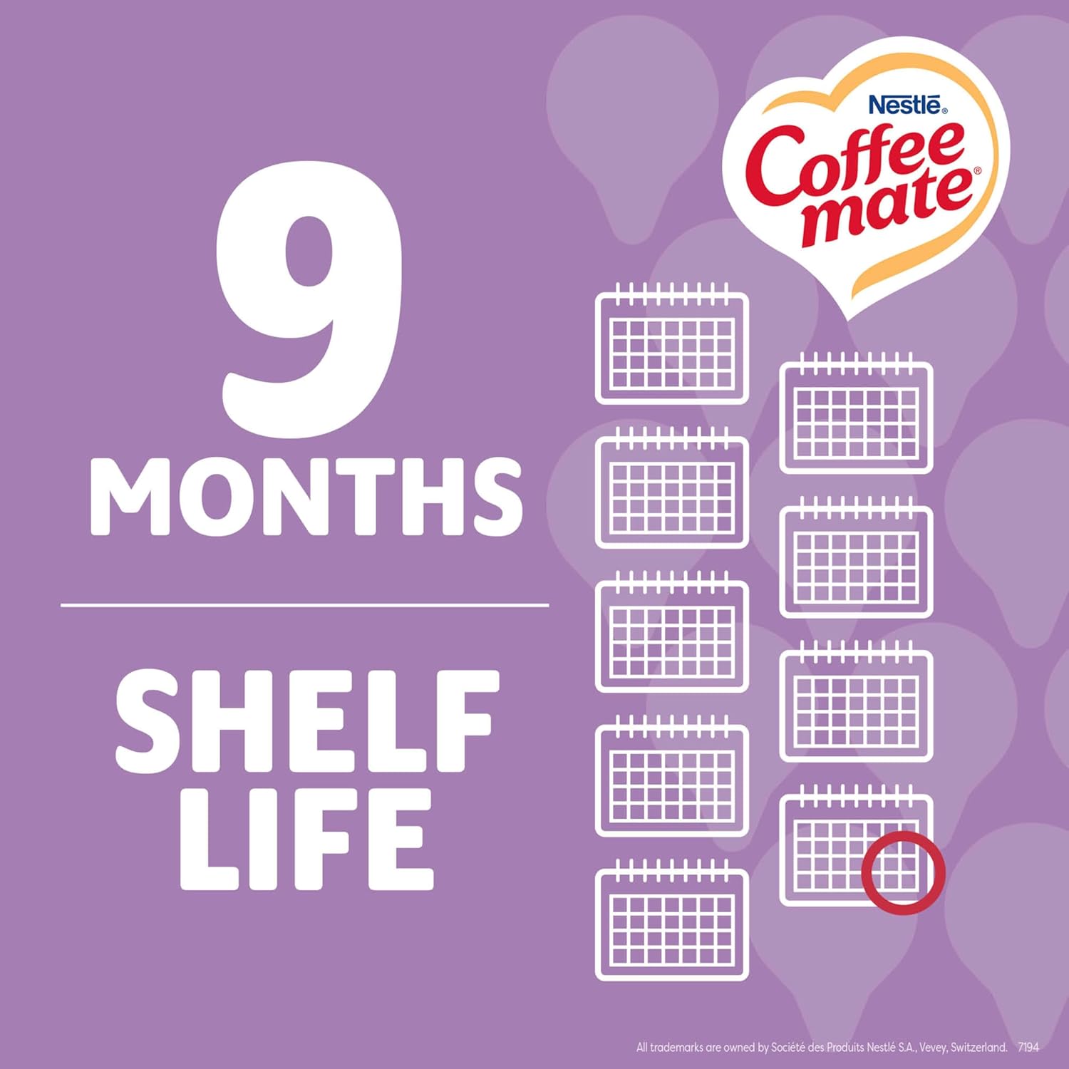 Nestle Coffee mate Italian Sweet Crème flavored liquid creamer singles will transport you to a land of exquisite taste. Within each cup is a rich Italian gelato flavor with a hint of luscious buttercream frosting that will enhance and enrich your coffee offer with a touch of differentiation. They are packaged in a convenient dispenser box, which keeps the counter clean, organized and can be displayed beautifully. These creamer singles don’t need to be refrigerated, and can retain their irresistible flavor at room temperature for up to 9 months. Easy to use - shake, open and pour. Non-Dairy + Lactose-Free + Cholesterol-Free + Gluten-Free + Kosher Dairy. Coffee mate is America's #1 coffee creamer. With a variety of flavors and formats, Coffee mate has your coffee creamer needs covered. Delight your employees, customers and guests by offering Coffee mate liquid creamer in your workplace, break room or kitchen. Covered by the Nestlé Professional 60-Day Satisfaction Guarantee for Select Products. See below for details.