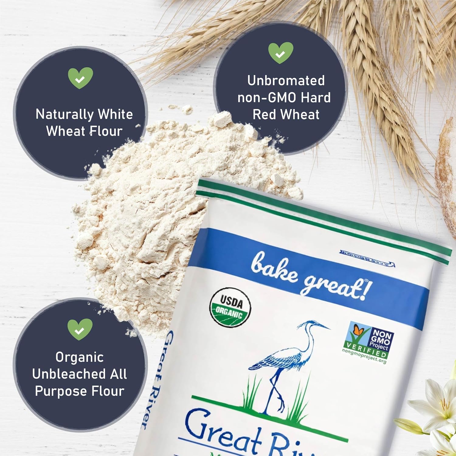 Great River Milling All Purpose Lily White Flour is a premium unbromated organic unbleached all-purpose flour crafted and sourced from non-GMO wheat for superior flavor and nutritional value. Perfect for all your baking needs and ideal for any recipe, from bread, cakes, and cookies to dinner rolls, soups, stews, and pizza. With 11.5% protein content, our flour delivers the essential balanced gluten and protein qualities necessary for perfect homemade cakes and bread. Despite its pristine white appearance, our flour is chemical-free, retaining its natural state for wholesome baking. Trust Great River Organic Milling to exceed your expectations with every batch, crafting quality flours since 1975.