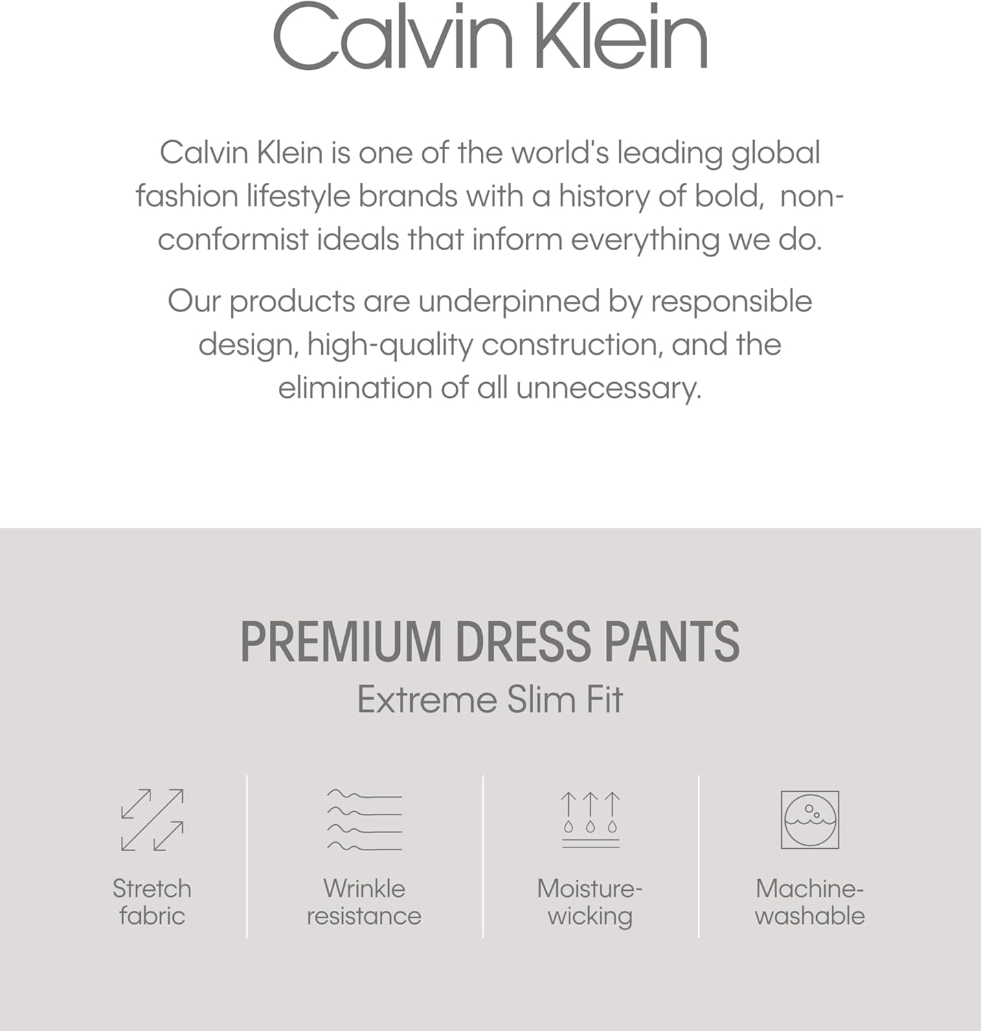 Elevate your wardrobe with Calvin Klein Men's Slim Fit Stretch Dress Pants, designed for the modern man who values both style and comfort. Featuring an ultra-tapered leg for a sleek, tailored look, these pants offer the perfect blend of sophistication and flexibility with 4-way infinite stretch fabric. Enjoy ultimate freedom of movement and all-day comfort thanks to the innovative comfort stretch waistband, which adapts to your body for a secure fit. Made from advanced tech fabric, they are wrinkle-resistant and moisture-wicking, ensuring you stay fresh and sharp throughout your busy day. Perfect for both formal and semi-formal occasions, these pants combine the refined look of traditional dress pants with the casual comfort of jeans, making them a versatile addition to any wardrobe. Experience the perfect fit and performance that customers rave about—upgrade with Calvin Klein today and enjoy modern elegance with unmatched comfort.