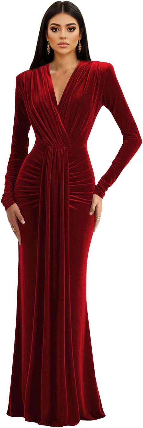 | Embellishment Feature | elegant velvet bodycon wedding guest dress, long sleeve mermaid bridesmaid dresses, mermaid velvet formal mother of the bride dress, velvet mermaid long prom dresses, velvet mermaid pleated formal evening dress long |