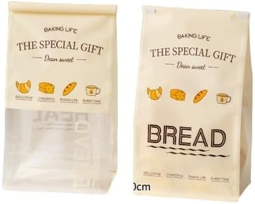 These charming Baking Life bakery packaging bags are designed to showcase your homemade breads and baked goods beautifully. Featuring a delightful 'Dear Sweet' design with playful bakery icons including croissants, cheese, bread loaves, and coffee cups, these bags add a special touch to any gift or presentation. The clear window panel allows the contents to be visible, making them perfect for displaying your freshly baked creations at farmers markets, bake sales, or as thoughtful homemade gifts for friends and family. The convenient roll-top closure keeps your baked goods fresh while creating an attractive, bakery-style presentation. These versatile bags work wonderfully for storing and presenting a variety of items including artisan breads, bagels, cookies, pastries, and other baked treats. The elegant cream-colored design with its warm, inviting aesthetic makes every homemade creation look professionally packaged. Whether you're a home baker looking to elevate your presentation or simply want to keep your bread fresh with style, these bags combine functionality with visual appeal to make your baking life more delicious and cheerful.