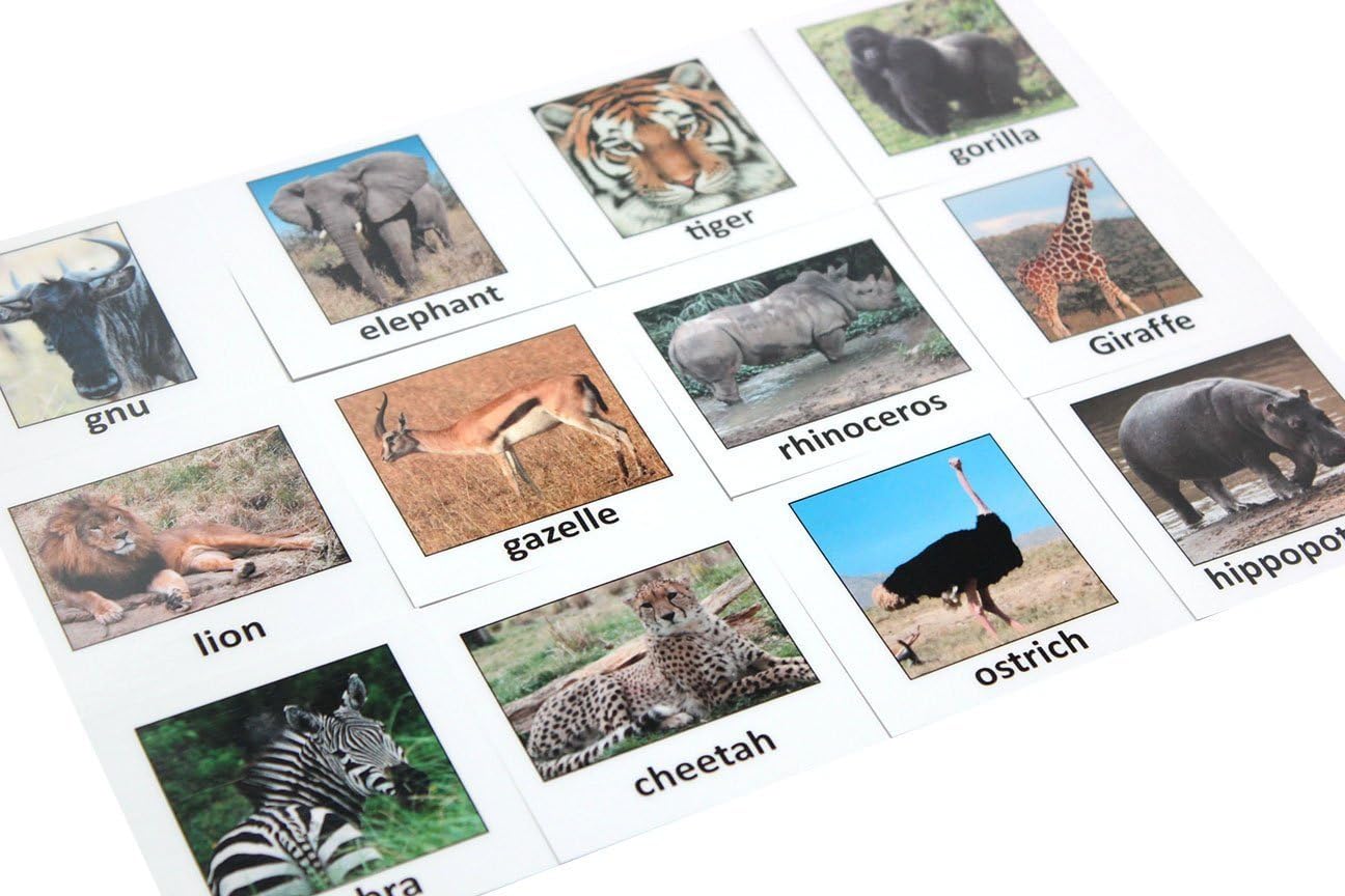 | Educational Objective | Montessori animal match nomenclature cards 3 part biology education learning toy |