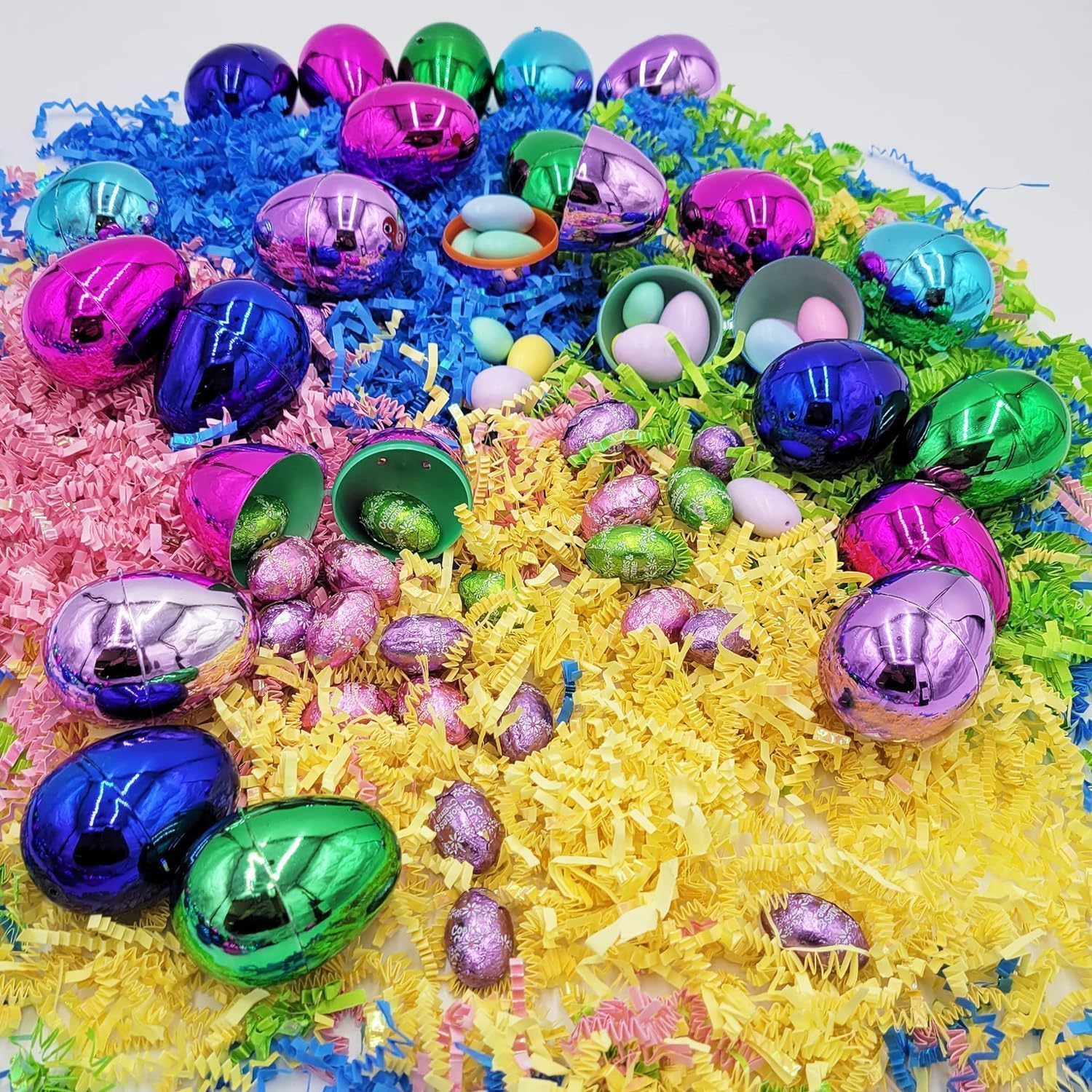 The Dreidel Company Metallic Multicolor Fillable Easter Eggs with Hinge Bulk Colorful Bright Plastic Easter Eggs, Perfect for Easter Egg Hunt, Surprise Egg, Easter Hunt, 2.25" Assorted Colors These Colorful Bright Plastic Fillable Easter Eggs with Hinge are the Hit of every Party. Detach the egg halves to Fill them up with a Surprise for your Little One. Fill These Cute Easter Eggs With Candies, Chocolates And Toys And Give To Children As Holiday Gifts Or Party Favors.The Fillable Easter Eggs will add Fun and Atmosphere to your party that will leave good memories to all your guests! They are wonderful gifts for Birthday Parties, Carnival Prizes, Classroom Rewards, Goodie bag Fillers and much more! These Fillable Easter Eggs are made from Plastic and are 2.25" Inches with Hinge.