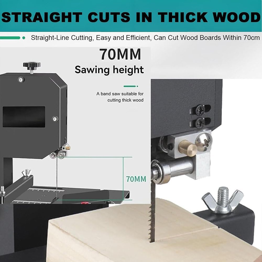 ❤Are you still w-orried about the bulky and large equipment taking up valuable space? Isn't this all-round cutting expert the perfect tool you have been looking for? ❤Your all-round cutting expert for small workshops: This versatile vertical woodworking band saw is designed for small workshops, home DIY enthusiasts and professional craftsmen. It combines powerful power, precise cutting and flexibility. It is an i-deal partner for processing a variety of materials such as wood, acrylic, foam, etc. Say goodbye to bulky large equipment and embrace the perfect combination of efficiency and portability! ❤Product specifications: Rated voltage: 220V Rated power: 800W (pure copper motor) Maximum cutting height: 70mm Workbench material: metal plate Workbench angle adjustment: 0-45° Throat depth: 90mm Saw blade size (circumference x width): 730mm x 3.2mm No-load speed: 1750 rpm Net weight: 8.5kg Packing size: 460mm x 350mm x 275mm ❤Packing list: 1 * Wire saw 1 * Drill chuck 1 * Cloth wheel 1 * Sandpaper disc 5 * Self-adhesive sandpaper 1 * Grinding wheel ❤Note: Due to different lighting and screen settings, the item color may be slightly different from the picture. Due to different manual measurements, please allow a difference in size. ❤Serve: If you have any questions, please feel to email us. We will reply you within 24 hours.Wish you a happy shopping
