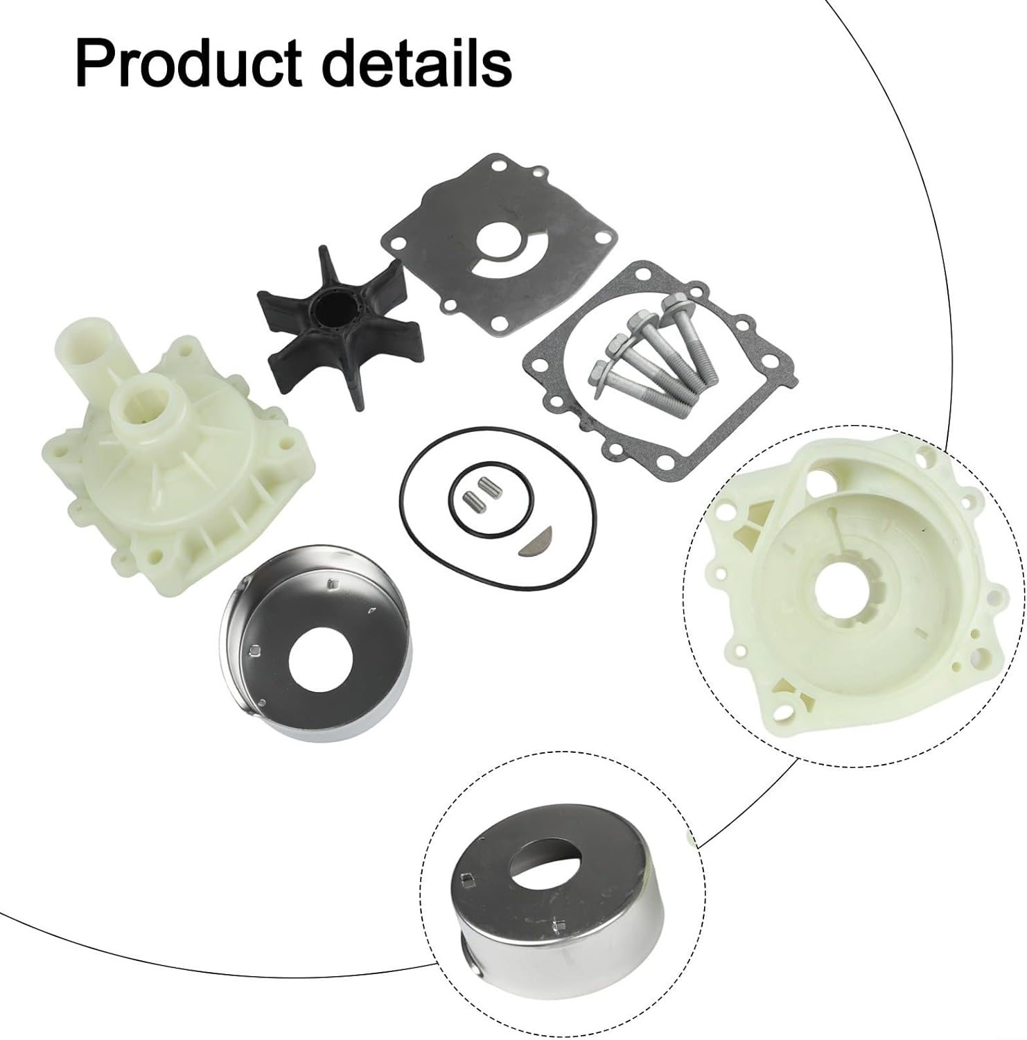 Features:*Compatibility: This water pump impeller kit is specifically designed to fit a wide range of for outboard motors, including both models, for ensure you have the right parts for your engine's needs.*Comprehensive Repair Solution: The kit includes all essential components needed for a complete water pump repair, enabling efficient maintenance and prolonging the lifespan of your outboard motor.*Construction: Made from high-grade materials, this impeller kit is built to withstand harsh marine conditions, providing reliable performance and reducing the risk of failure during operation.*Easy Installation: Designed for straightforward installation, this kit allows boat owners to quickly replace worn or damaged parts without requiring tools or extensive mechanical knowledge.*Enhanced Cooling Efficiency: By for ensure optimal water flow and cooling for your outboard engine, this impeller kit helps maintain performance, For fear that overheating and promoting smoother operation on the water.Specifications:Part Name:Water Pump Repair KitMaterial:Plastic + MetalSize:As shown in the figureColor:As shown in the figureFitment: for Outboard 150 175 200 250 for HPPackage Content:1 Water Pump Repair Kit