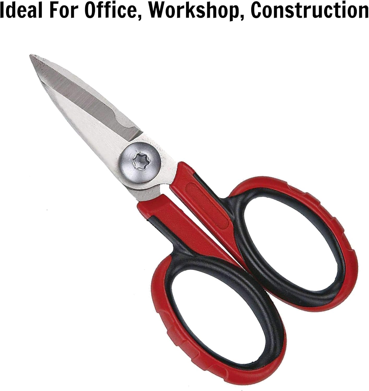 Scissors featuring a high carbon stainless steel blade and a bi-material grip for added comfortPrecision metal cutting blade. Total Length: 5.5 Inches , Blade Length: 1.65 Inches, Cutting Capacity: .85 Inches / 22mmA great utility scissors and a tool for use in the garage, workshop, construction or commercial usesScissor blades have been individually inspected and hand tested to ensure qualityLong lasting wear-resistant stainless steel blades. Sharp, robust blade cuts through tough materials)