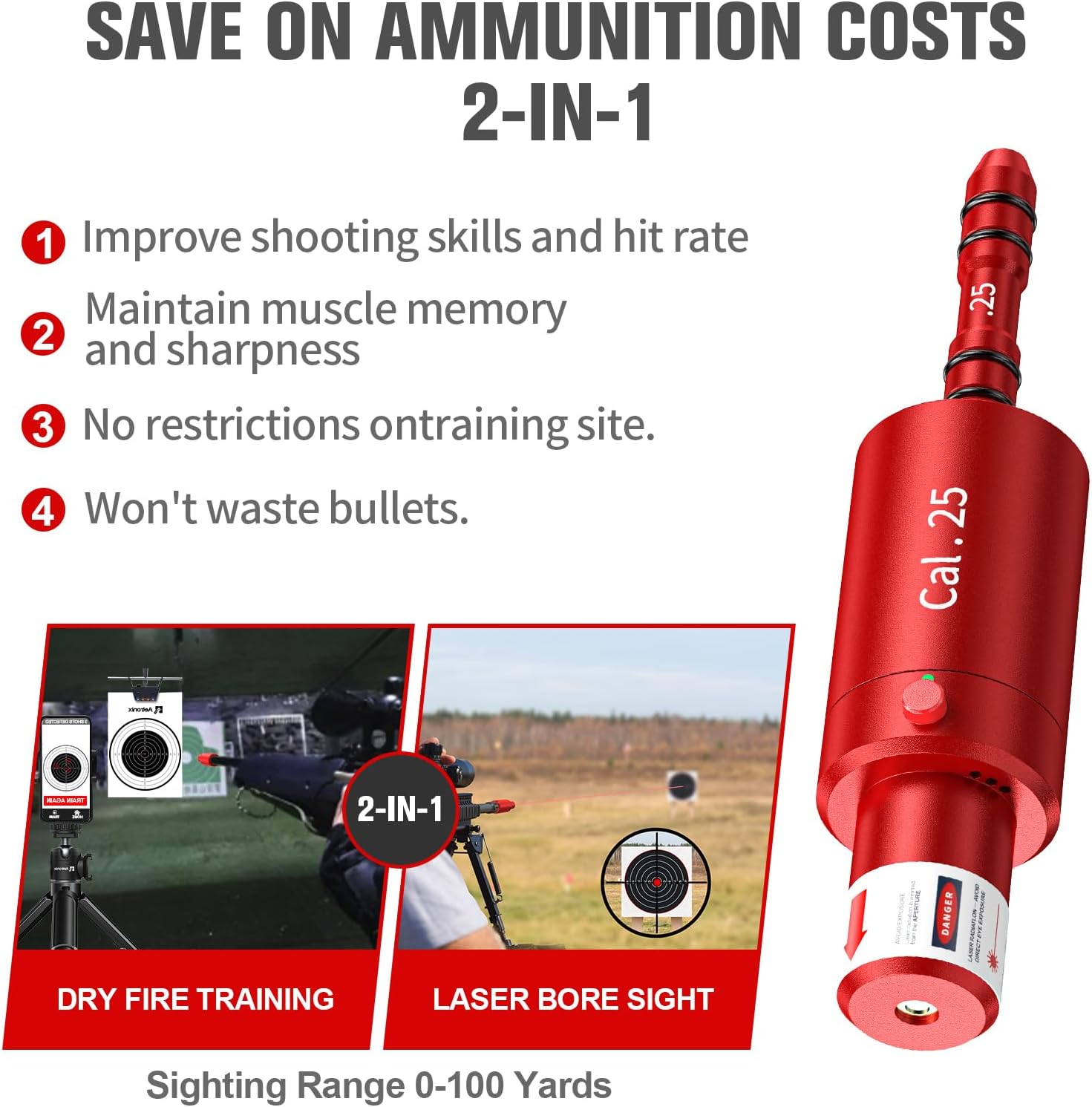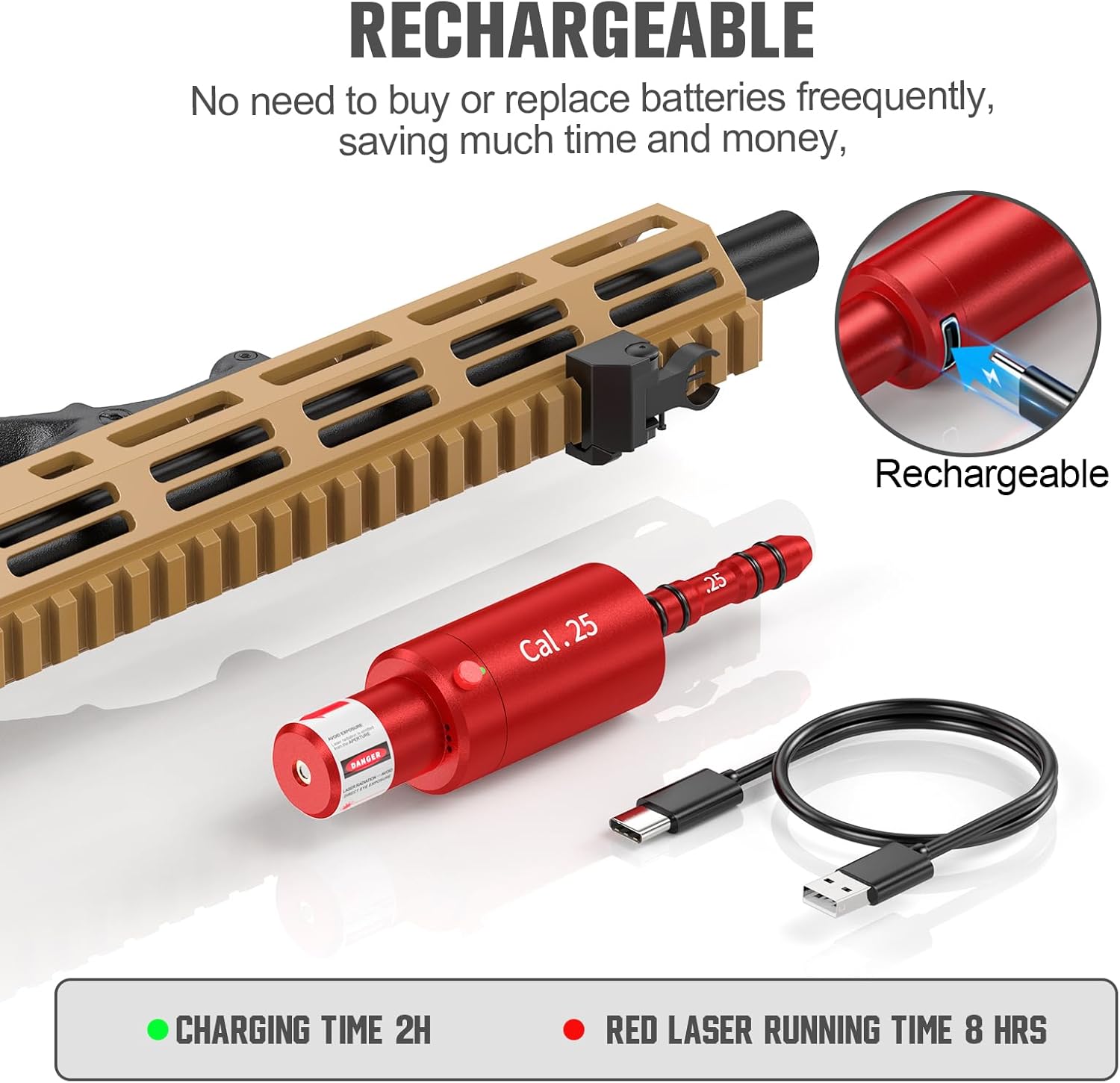 | Included Components | 1 x 2 in 1 laser training cartridge boresighter, 1 x usb c cable, some x O-rings |