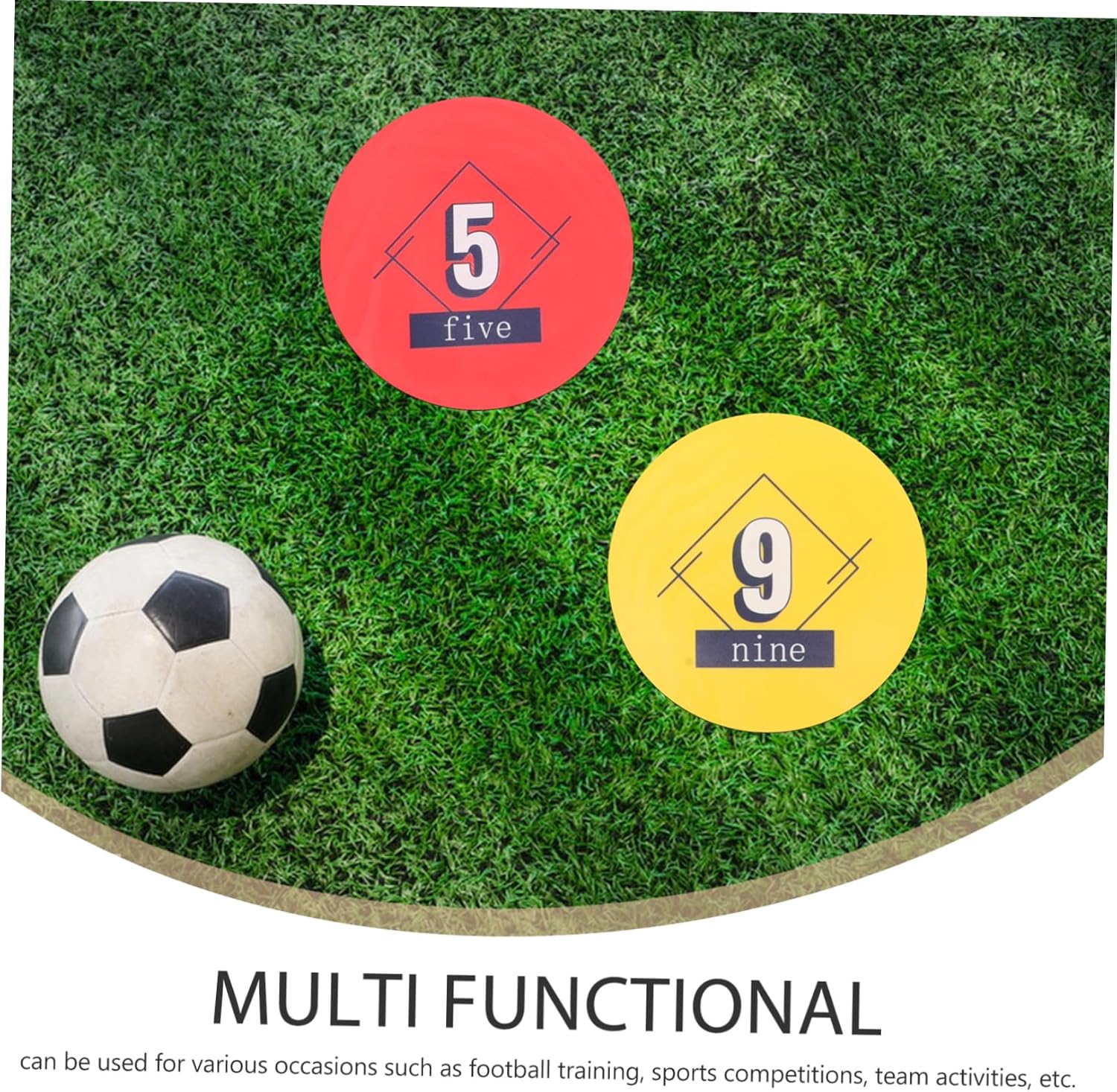 Package List 10 x Soccer Training Markers Features -Material:PP basketball training equipment -Numbered spot discs: comes with 1-10 numbered discs, making it easier to mark and count during practice and games ground markers. -Multifunctional design: great for soccer training, athletic competitions, and team activities, providing diverse usage options field markers. -Size:23.00X23.00X0.20cm/9.04X9.04X0.08in football training equipment -Number Range:1-10 floor marker - materials: crafted from sturdy materials, these convenient football training markers are easy to clean, ensuring extended use floor markers. -Color:Assorted markers -Convenient portability: lightweight and easy to carry, these sports training markers are ideal for training and competitions at different venues basketball mats for training. -Round shape: the circular design offers a broader training area and enhances visual effectiveness for better practice soccer training marker.Goods Informationspot markers for sports The durable construction ensures they can handle intense training sessions, while their lightweight nature makes them easy to carry and set up.basketball supplies for training markers are ideal for organizing drills and exercises, providing clear visual targets for athletes.football training equipment Our agility training equipment includes these versatile spot markers, designed to support various sports activities