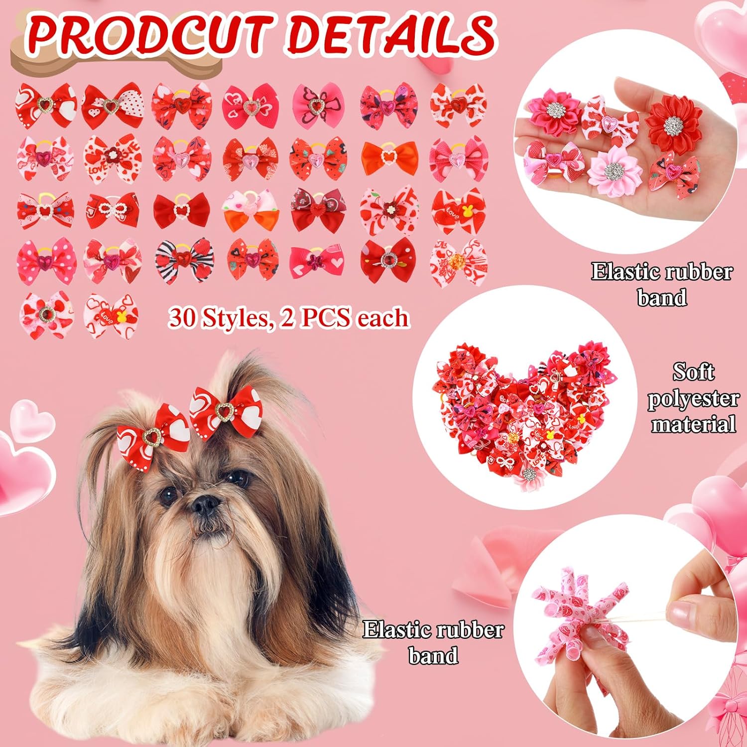 • Safe and Quality Material: made of polyester and rubber materials, valentine puppy hair bows for small dogs are reliable, safe, comfortable and convenient to use; You can put the bow on your pet's hair effortlessly, and it should be removed slowly so as not to pull the hair of your pet and cause discomfort