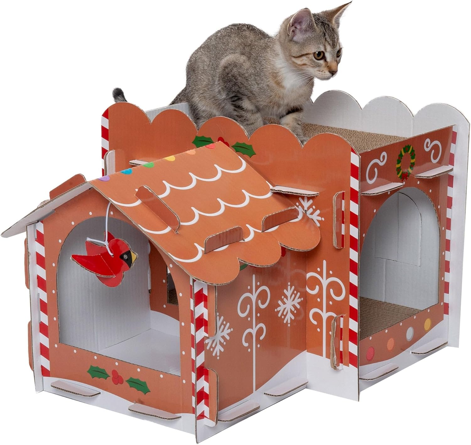 BIG fun for the holidays and all year-round, Furhaven's Giant Snowman Corrugated Cat Scratcher Busy Box is twice the size of other busy box cat toys! Perfect for multi-cat households, this combo ball puzzle and scratcher features multiple play and scratch zones. Attention-grabbing jingle ball toys weave in and out of view behind colorful cutouts to keep your cat engaged. This adorable snowman also features a corrugated belly scratcher to encourage your cat to scratch (and keep their claws away from expensive furniture). Includes catnip to entice even the most finicky felines to play.