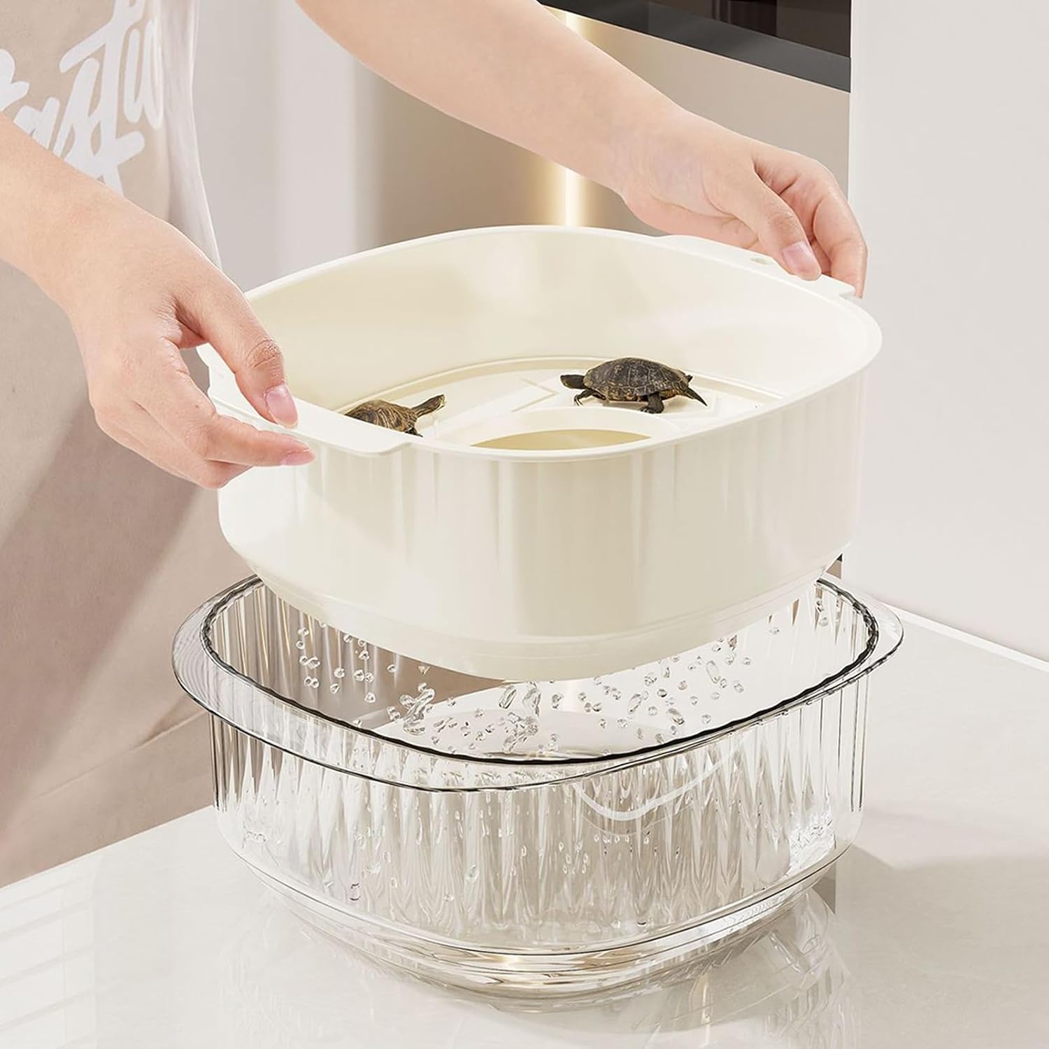 Pet Reptile Shrimp Terrarium provides a versatile habitat solution for various aquatic and semi-aquatic pets, including hermit crabs, crayfish, fish, amphibians, and tortoises. The multifunction areas are thoughtfully designed to provide an enriching environment, while the small and compact structure ensures it fits comfortably in any space. Its clear design allows for a full view of your pets' activities, enhancing the interaction and enjoyment for both you and your animals. This terrarium is ideal for creating a comfortable home for reptiles, shrimps, and other aquatic pets, making it a reliable choice for pet owners seeking practicality and visibility in their pets' living space.Specification:Product name: small turtle tankProduct size: about 20.5x12x26.2cm/8.07x4.72x10.31 inchesMaterial: ABSWeight: about 780, 1010gPacking List:1 x small turtle tankNote:Due to different lighting and screen settings, item colors may vary slightly from the pictures.Due to the difference in manual measurement, please allow a 1-2cm difference in size.