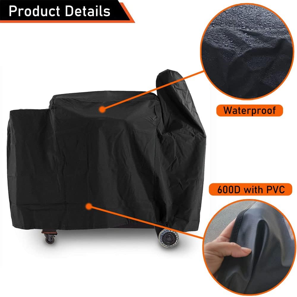 Specification: ?Dimension: 62L x 24W x 47H (Height includes the chimney) ?Fits for Pit Boss Austin XL, Rancher XL, 1000 series, 1000SC, 1100 series, 1100 Pro, 1000SC2, 1000Sq ?600D Heavy Duty polyester---Against all outdoor elements Features: ?Color of Black: Black is more resistant to dirt and better blocks ultraviolet light ?Weather-resistant and UV-inhibiting fabric protect against outdoor elements from UV, wind, water, rain, snow, hail and dirt all year round. This tough fabric provides a powerful protection against any weather ?Strong stitching prevents water penetrating into the grill cover, repels the rain, it's more durable and rip-resistant ?Elastic hem cord lock makes it easy to keep the smoker cover secure, prevent it from slipping or blowing off, especially during high winds and severe weather