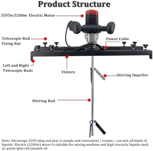 Introducing our innovative IBC Electric Mixer, designed specifically for efficient mixing in confined spaces. This special barrel mixer features a unique folding blade design, allowing you to easily navigate various container sizes, such as bulk containers, IBC tanks, and plastic drums. The ability to detach the large diameter mixer from the small diameter cover ensures that you can achieve optimal mixing even in tight areas where conventional mixers fall short. With a powerful 3000W/3280W motor and a speed range of 0-800 RPM, our mixer delivers consistent performance for mixing up to 1 ton or 1000 liters of material. The 40 cm aluminum alloy blades ensure durability while providing effective mixing in a wide variety of applications. Its lightweight design (only 12 kg) makes it easy to handle, and the adjustable horizontal plate telescopic range of 65-125 cm adds versatility to your mixing tasks. Ideal for both industrial and home use, this electric mixer is perfect for anyone looking to streamline their mixing process, whether for chemical production, food processing, or other liquid applications. The compact design allows users to mix in containers with small openings, ensuring that no material is left unmixed. We are committed to providing excellent customer service. If you have any questions or concerns after receiving your IBC Electric Mixer, please don’t hesitate to reach out. We are here to assist you promptly and ensure your satisfaction. Upgrade your mixing experience today with our specialized IBC Electric Mixer!