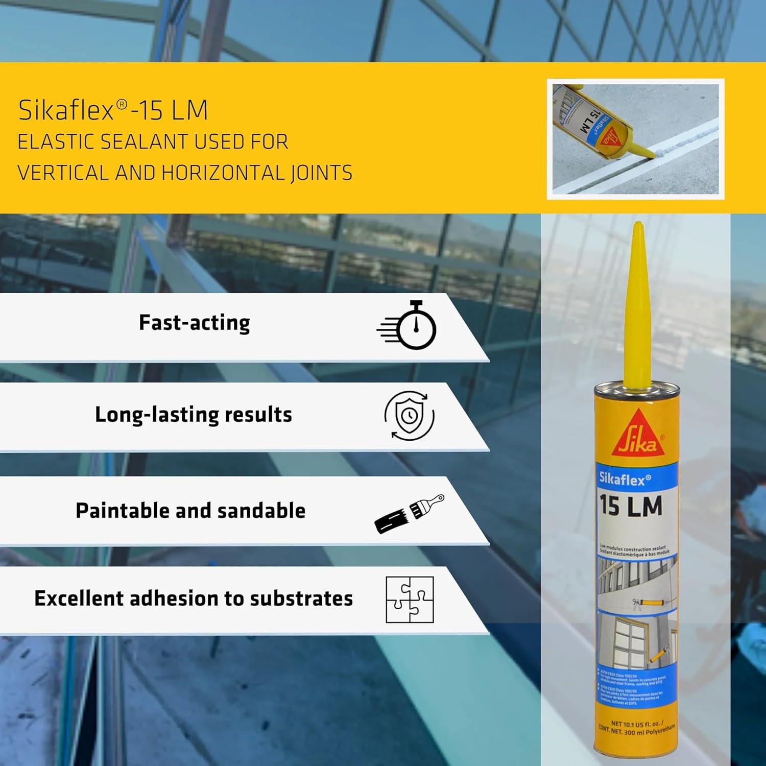 Sikaflex 15 LM is a low-modulus, high-performance, 1-component, polyurethane-based, non-sag elastomeric sealant.