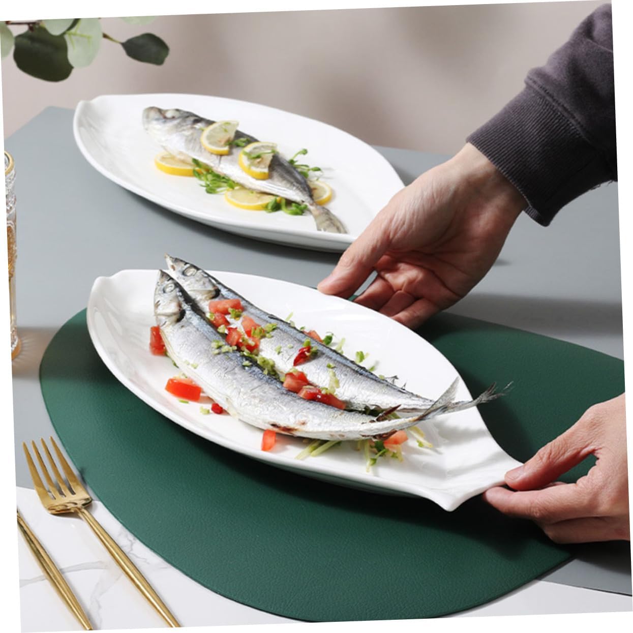 Package Include 1 Features -Material: Ceramic fish plate for sushi - Size: 45.50X20.00X3.00cm/17.88X7.86X1.18in home supplies - Color: White ceramic plate for hotel Note: there may be some variation due to hand crafting serving plate for fish -Elegant design bring you a good mood and enjoy delicious food. Suitable for many occasions ceramic dinner platter. -Ceramic Food Plate is made of and fine craftsmanship, this plate can be used for a long term dining platter. -Ceramic food plate is perfect for family gatherings, parties, weddings, bars and restaurants, dessert shop and more serving dishes for parties. -Perfect for appetizers, cake desserts, roast sticks, fish fillets, sandwiches, sushi rolls, fruit slices or other snacks party trays. - craftsmanship, smooth and bright surface, easy to clean without hurting your hand restaurant plates.Goods Informationdining platter A Ceramic Serving Platter is perfect for any event, and can hold fish, fruit, vegetable, cupcakes, food, buffet food, etc.dinner plate It is perfect for any occasion, family reunions, parties, birthdays, anniversaries, engagement, birthday party.porcelain plates enough to put in the dishwasher, microwave, oven, and freezer