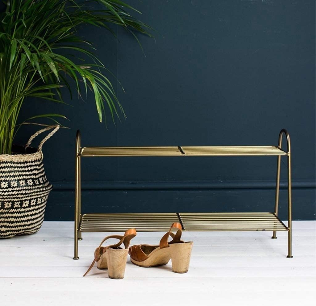 Push-fit metal tubes and plastic connectors, our shoe racks can be easily assembled in minutes, no complicated tools required Product name: shoe rack. Product color: gold. Product material: Metal Product application: entrance hall, bedroom, study room, living room, etc. Product size: 64 * 37 * 28cm (length * height * width) Purchase items: This product does not include other items except the shoe rack. Due to the slight chromatic aberration of different ambient light, it may appear different colors from the picture, please understand. Because it is manual measurement, there may be some small errors, please use the actual product as the standard, please understand. Simply wash and use. Please pay attention to personal tidy and cleanliness. When cleaning the product, only water and soap are enough. Please dry it in time after washing. Our most faithful service, if you encounter any problems when using this shoe rack, please contact us, you can rest assured to buy our products. I wish you a happy shopping!