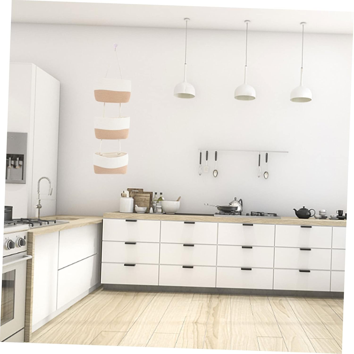 Package List 1 x Three Layered Hanging Storage Basket Characteristics -Material: Cotton Rope Woven Hanginging Basket - The pastoral style adds fashion to your home decoration and adds a warm and pleasant feeling to your space Kitchen Basket. - Creative three layered design can be used to hold eggs, fruits, bread, vegetables and other foods Woven Storage Container. - Suitable for a variety of places, such as homes, hotels, offices, restaurants and other places Three Layered Storage Basket. - , professional and decorative storage baskets bring great convenience to your kitchen Woven Hanging Basket. - Made of cotton rope materials, and to use, not easy to break or deform Cotton Rope Container.Goods DescriptionSundries Storage Basket Our woven storage basket is specially designed for kitchen storage.Pastoral Woven Basket Do you need a simple and storage basket to help you organize the kitchen clutter? Are you still looking for a suitable and storage basket? Then your search can be over now