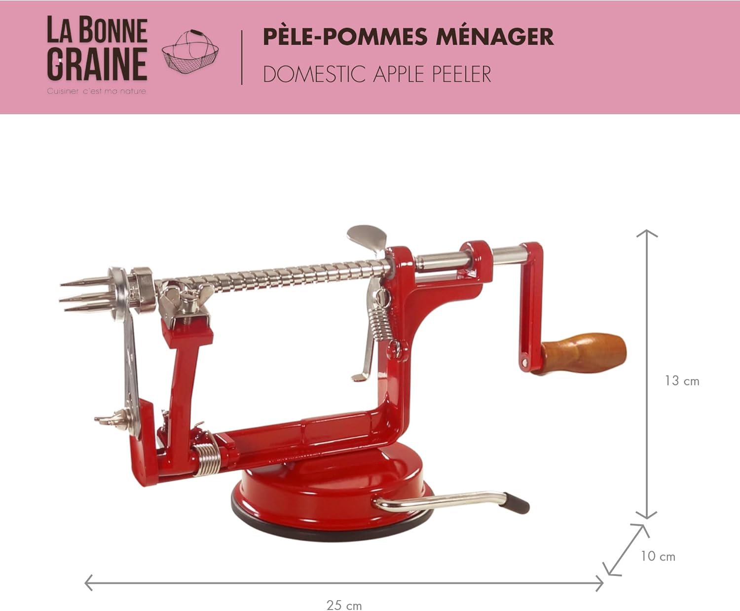 LA BONNE GRAINE - Apple Peeler 30.5x18.5cm Red - For over 65 years Tellier has consistently launched innovative and useful products to provide its worldwide customers with tools designed to meet their needs and requirements. The company is now a major player in the professional kitchen and catering equipment market. In France in 1947 Louis Tellier revolutionised the gastronomic world by creating the world's first professional food mill. This groundbreaking innovation, the first in a long series, established the company's reputation as a manufacturer of robust and efficient small kitchen appliances. La Bonne Graine is an exciting addition to the range, offering a collection of high quality, traditional kitchen utensils and accessories for both professional and home chefs.