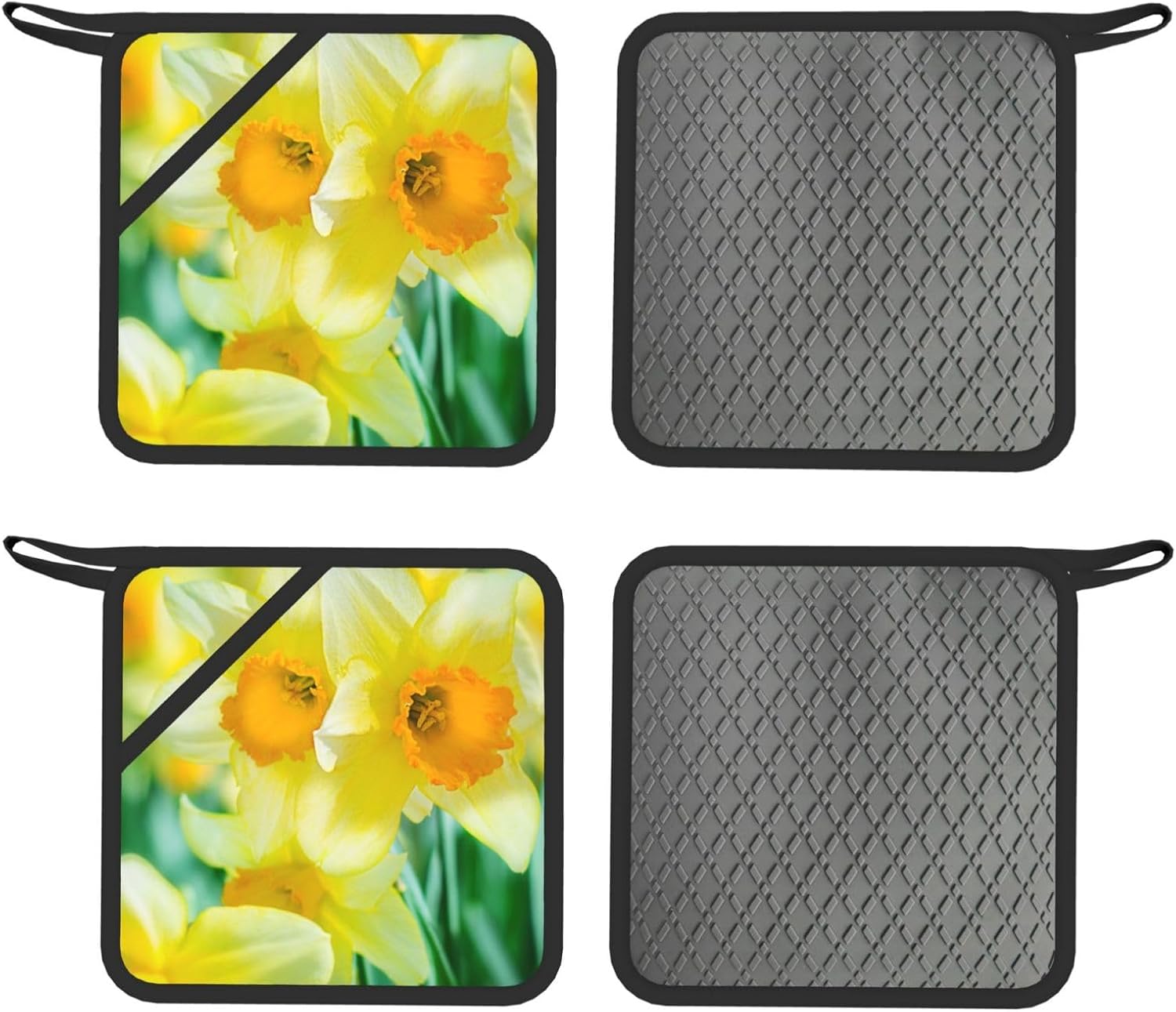 Upgrade your kitchen essentials with this oven mitts and pot holders set, designed for safe and comfortable handling of hot cookware. The set includes 2 heat-resistant oven mitts and 2 pot holders with pockets, making it a practical choice for daily cooking, baking, grilling, and microwave use.Crafted from high-quality polyester with thick insulated padding, these kitchen gloves deliver reliable heat protection up to 260°C. The soft quilted lining ensures comfort and flexibility, while the silicone palm design enhances grip and control when handling hot pots, pans, and trays.The non-slip silicone surface provides added stability, giving you confidence when moving hot cookware. Waterproof inner and outer layers make cleaning simple—just wipe clean or hand wash and air dry for easy care.Each piece features a convenient hanging loop for organized storage and quick access in your kitchen. Stylish and functional, this oven mitts set also makes a thoughtful gift for family and friends on holidays, housewarmings, and special occasions.