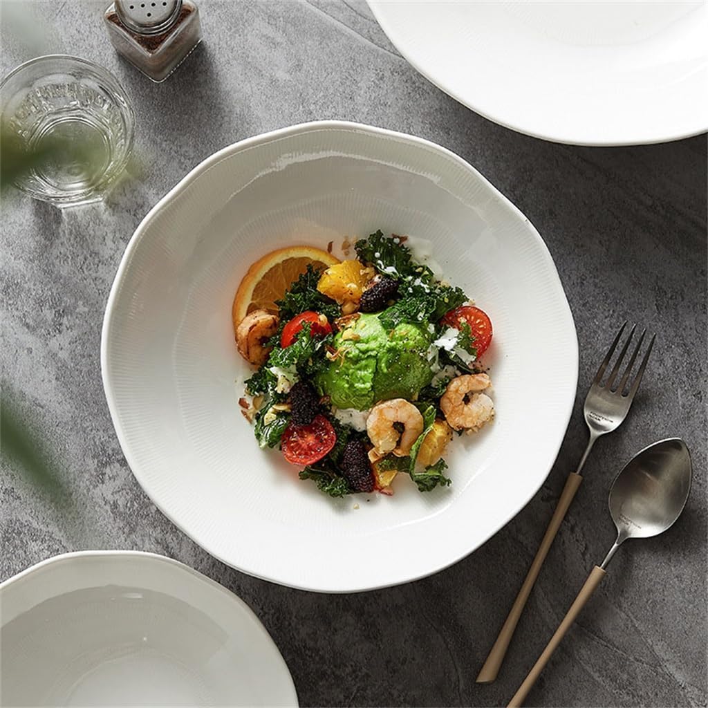 Beveled Salad Bowl Vegetable and Fruit Plate Ceramic Dessert White Tableware