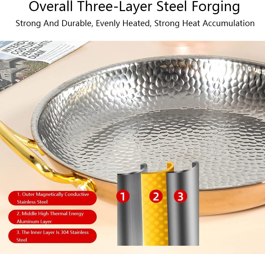Originating from What is Now Valencia, Spain, the Popular Spanish Dish of “Paella” Sprang in between the Romans and Arabs Where They Perfected It Amongst Themselves, That Still Stands Remaining As Loved Today As When It Was First Created. This Pan Showcases the Traditional Valencian Style. the Wide, Shallow Textured Bottom Cooking Surface is Designed to Sauté Meats and Vegetables.Authentic Paella Pans Imported from Spain, a Must-Have for Every Paella Fan, Ive This Stainless Steel Paella Pan with Rivets Handles As a Memorable Gift to Any Paella FanMade of Top Quality Polished Stainless Steel, Which Conduct Heat Quickly and Create the Paella.Designed with Double Metal Handles, Wide Ear Distance, Effective Anti-Scald, Double Ear Rivets,Ng and .Suitable for Wood Fires, Gas, Oven, Induction and Gas Burners. Enjoy Your Feasts with Family or Friends.10 Sizes to Choose, for Serving 2 to 6 People.Specifications:Type: Spanish Paella PanMaterial: 304 StainlesssteelColor: Silver/Rose GoldSize: 10 Sizes, 18Cm-36Cm Can ChooseFeature: Non Stick, Uncoated, Hand Hammered, Dishwasher-SafeApplication: Home, Kitchen, Restaurent, Party, Outdoor, CampingServer: 2-6 PeoplePackage List:1 X Spanish Paella Pan