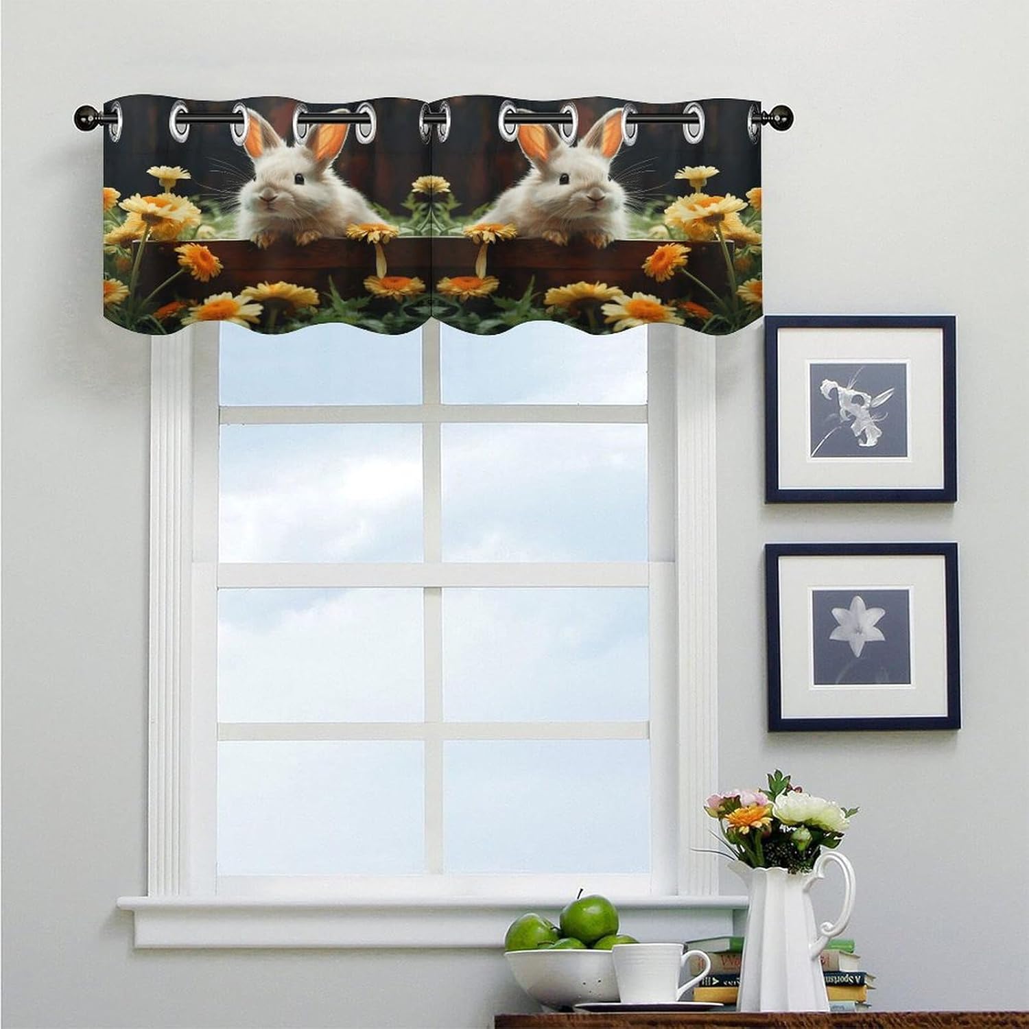 Perfect Pair Printed Curtain - Rabbit And Flower Light Filtering Modern Window Décor Elevate your windows with our beautifully designed two-piece Rabbit And Flower curtain set, combining a functional printed curtain with an elegant coordinating valance. Crafted for versatility, this Rabbit And FlowerCurtain is the ideal solution for adding privacy, style, and controlled light to any room. Premium Fabric & Modern Design: Crafted from premium fabric, this Rabbit And Flower Curtain maintains a soft hand-feel and a graceful drape over time. The elegant print and smooth texture provide a sophisticated look that enhances your home's ambiance. Optimal Light Filtering & Protection: This Rabbit And Flower modern curtain effectively filters harsh sunlight, creating a softly illuminated and comfortable atmosphere. It helps protect your furniture and flooring from UV damage while providing a good level of privacy. The fabric is resilient and designed for easy care. Versatile Application: This Rabbit And Flower ready-to-hang Curtain is designed for broad compatibility. The curtain features standard 4.5cm grommets for smooth gliding on most curtain rods. With dimensions of 52" W x 18.1" H per panel, it's perfectly suited for various window styles. Ideal as a charming kitchen curtain or cafe curtain for bottom-up coverage, it also functions perfectly as a tier curtain. Whether you're looking for a stylish printed curtain for your living space, a functional light filtering curtain for a bedroom, or a complete look with a curtain valance, this Rabbit And Flower set delivers both style and purpose. Set Includes: Two printed curtain panels Bring a cohesive and stylish upgrade to your home with this Rabbit And Flower versatile curtain .