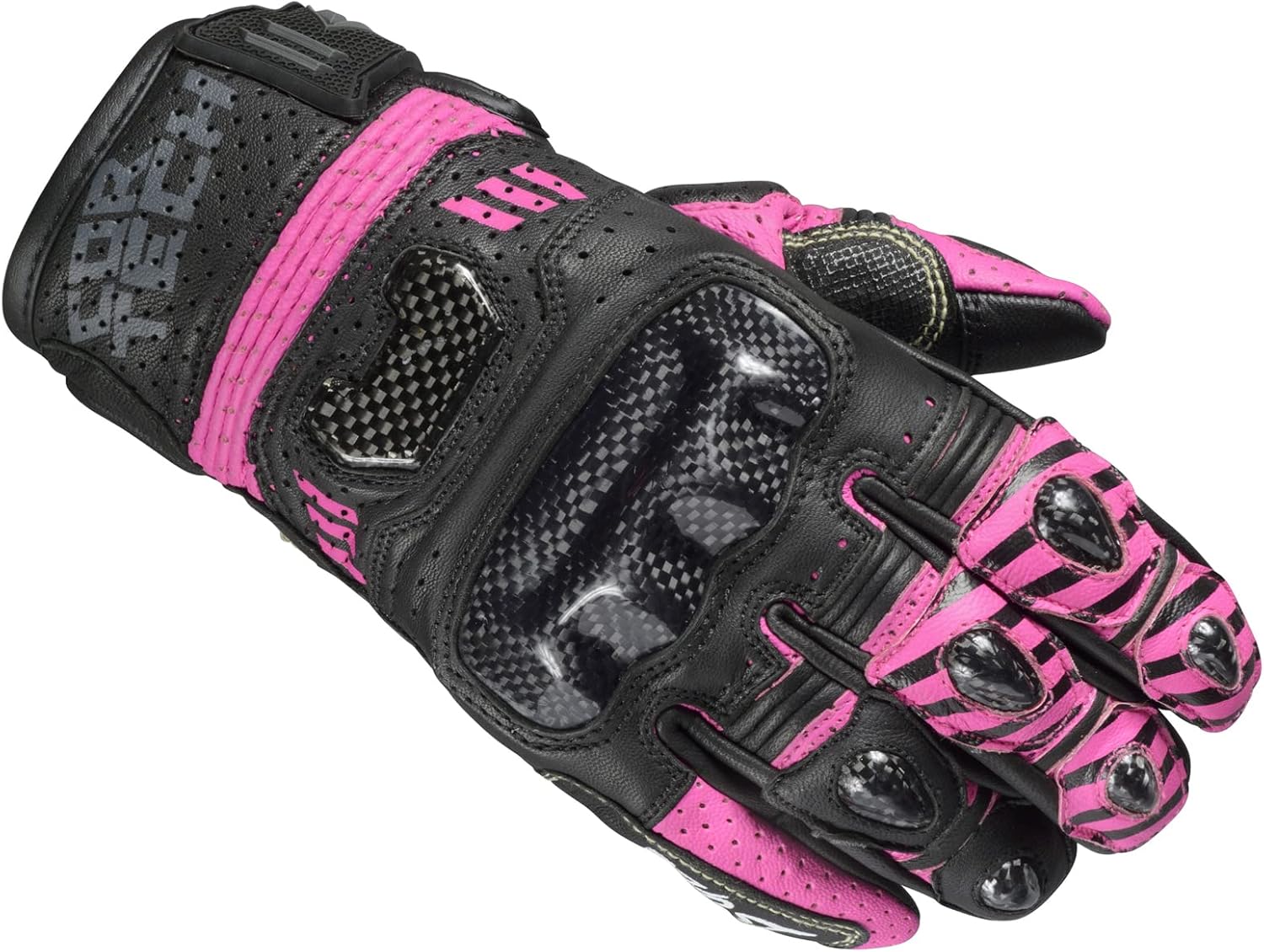 The Cortech Women's Revo Sport ST Gloves are built for riders who want serious protection without compromising fit or style. Designed with genuine goat leather on both the backhand and palm, these short cuff gloves offer excellent abrasion resistance while maintaining a lightweight feel. Full perforation across the fingers, thumbs, and backhand enhances airflow for warmer rides, and carbon fiber armor at the knuckles, fingers, and heel adds high-impact protection where it counts. Pre-curved fingers and reversed seam construction provide a comfortable, low-profile fit, while accordion paneling across the top of the hand ensures natural movement and grip. Reinforced leather and microfiber overlays on the palm, thumb, and pinky enhance durability in key zones, and touchscreen-compatible fingertips let you stay connected on the go. Finished with a TPR hook-and-loop wrist closure for easy adjustment, the Revo Sport ST Gloves combine performance, function, and feminine fit for confident riding on any road.