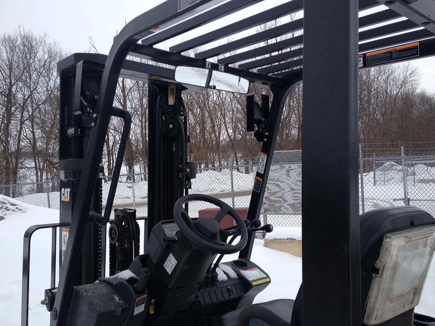Fits many forklifts such as Nissan, Toyota, Still, Komatsu, Crown, JLG, Daewood, TCM, Raymond..... * 3.2" x 16.5" mirror face. * Curved to see everything behind you, without distortion, or multiple panels to look at! * Just look into the mirror face and see everything in one quick glance. * Easy to look into and see 150 degrees behind you! You can see just about everything behind your left and right hand shoulders. * Easy to install with the provided bracket plate (heavy gauge steel) and two self tapping screws. * This mirror pivots up and down with a very high end friction hinge rated for 1 million adjustments. Set it where you want for your height and your done. * No side adjustments necessary because the panoramic mirror allows you to see 150 degrees behind you. * Mirror made of real glass with a ABS plastic rear housing. * Be safe and able to see what is going on behind you. * Universal fit for many brands of forklifts. PLEASE MAKE SURE THAT YOU HAVE A METAL CROSS BAR IN THE AREA THAT YOU WANT TO MOUNT THE MIRROR TO. THE MIRROR IS MOUNTED VIA TWO SELF TAPPING SCREWS.