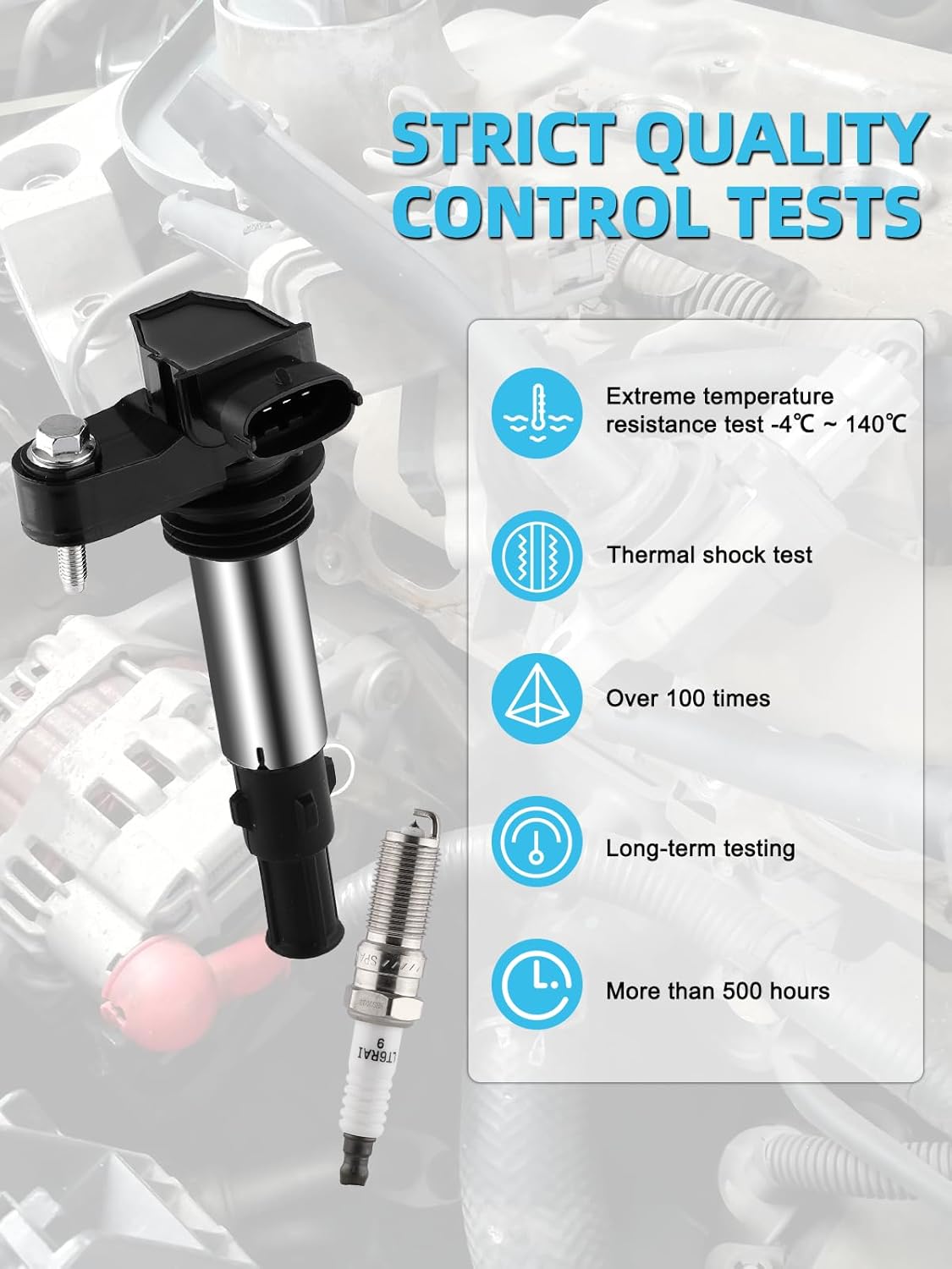 • 【STRICT QUALITY CONTROL】Engineered and tested to match or exceed OE for spark energy output, impedance and durability. Manufactured in TS16949 certified facilities, 100% function and leakage tested.