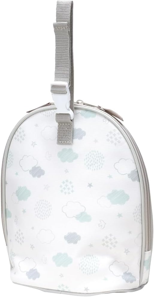 Large pouch to hold baby bottle and milk case etc. Convenient for making milk on the go. Comes with a buckle that can be attached to the stroller for portability. Uses vapor-deposited aluminum film for heat and cold retention. Wide zipper for easy access Convenient pocket for storage. Not waterproof. Please do not use a washing machine or dryer.