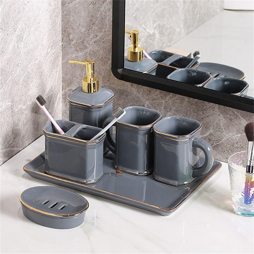 Embossed design, elegant and generous,It is suitable for both bathroom use and home displayFines porcelain, highs qualitys clay firedThe body is fines, clean and smoothGiving it away for personal use is a good choicePackaging: Toiletries set *1 (excluding other display items)Notes:Size information is for reference only, manual measurement may have an error of 1-2 cm.Due to differences between different monitors, the picture may not reflect the actual appearance of the productThe bathroom kit is very suitable for home bathrooms, dormitories, hotels, and apartments