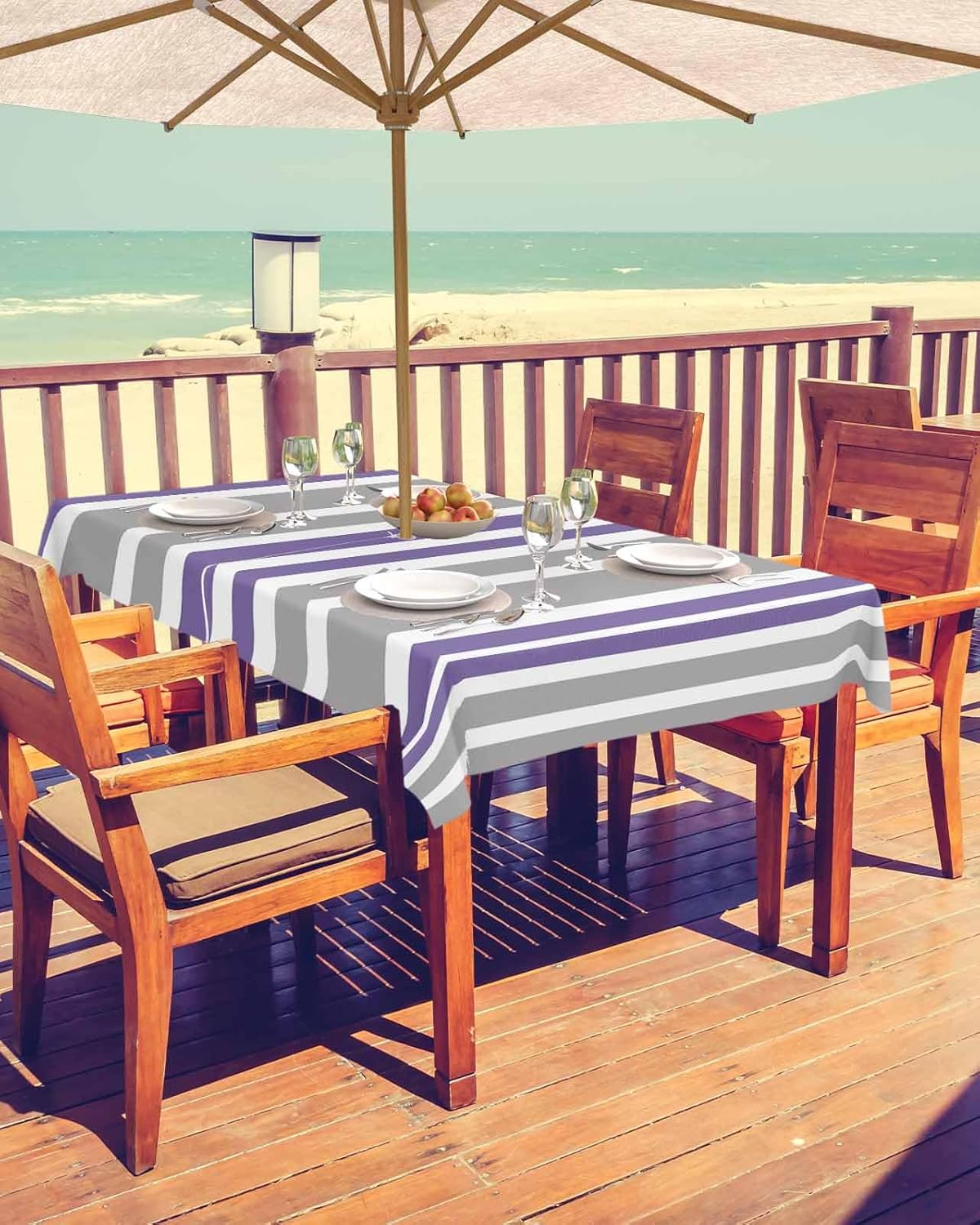 Why Choose Kinminaili Kinminaili Outdoor Table Cloth with Umbrella Hole: 1. High-quality Material & Exquisite Craftsmanship: This tablecloth is made of 100% polyester, stain and waterproof. And we use exquisite stitching technology to make it more serviceable 2. Bright Up Your Outdoor Table: Our tablecloth is printed with delicate patterns, whose vibrant color and stylish design will impress your guests and bring an unique dinning experience 3. Easy to Clean: This table cloth is machine washable; Do not bleach and do low temperature ironing if necessary Sizes You Can Choose: 54" Round: Seats 4 - 6 people 60" Round: Seats 4 - 6 people 54" Square: Seats 4 - 6 people 60" Square: Seats 4 - 6 people 52" x 70" Rectangular: Seats 4 - 6 people 54" x 80" Rectangular: Seats 4 - 6 people 60" x 84" Rectangular: Seats 6- 8 people 60" x 102" Rectangular: Seats 8 - 10 people 60" x 120" Rectangular: Seats 10 - 12 people