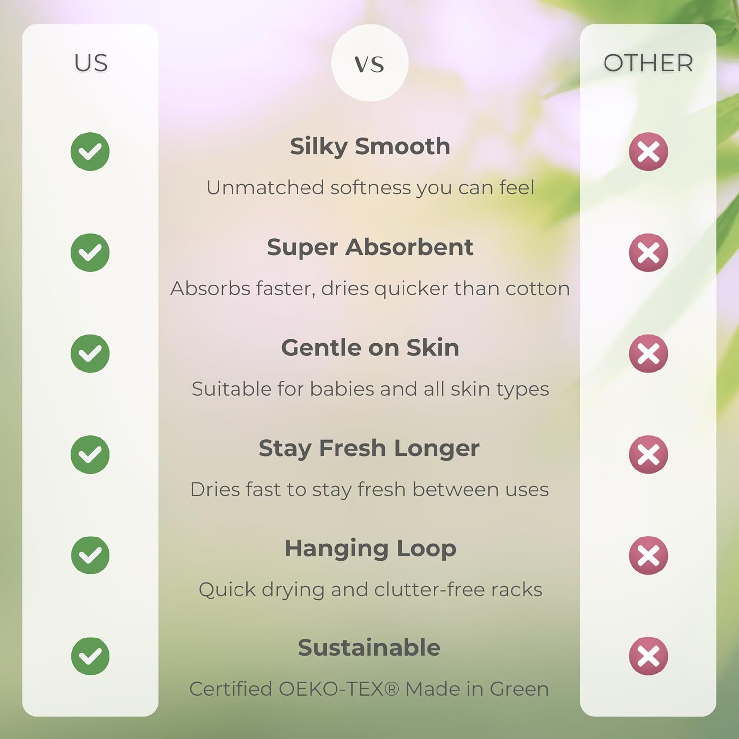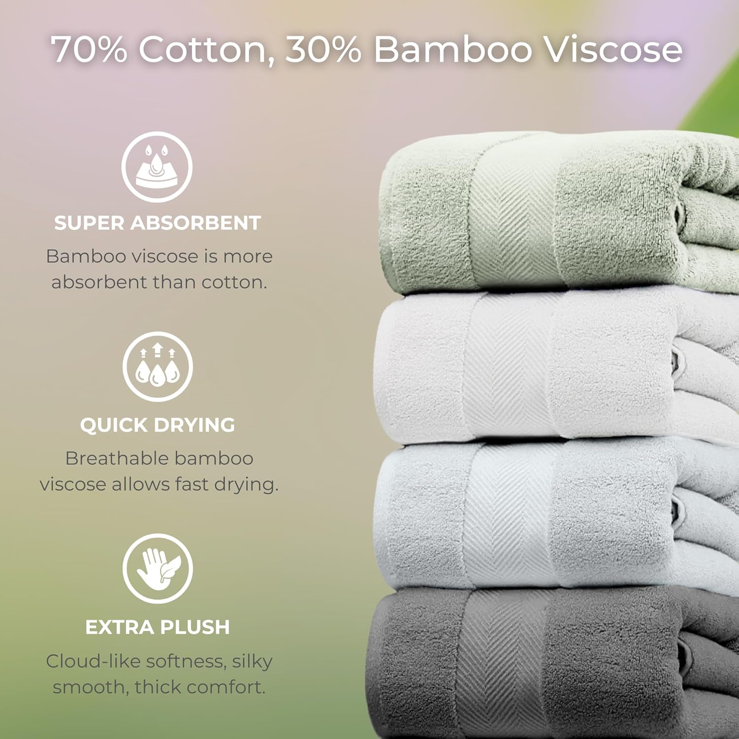 | Fabric Type | Blend of 30% Premium Bamboo Viscose and 70% Zero-twist Cotton. |