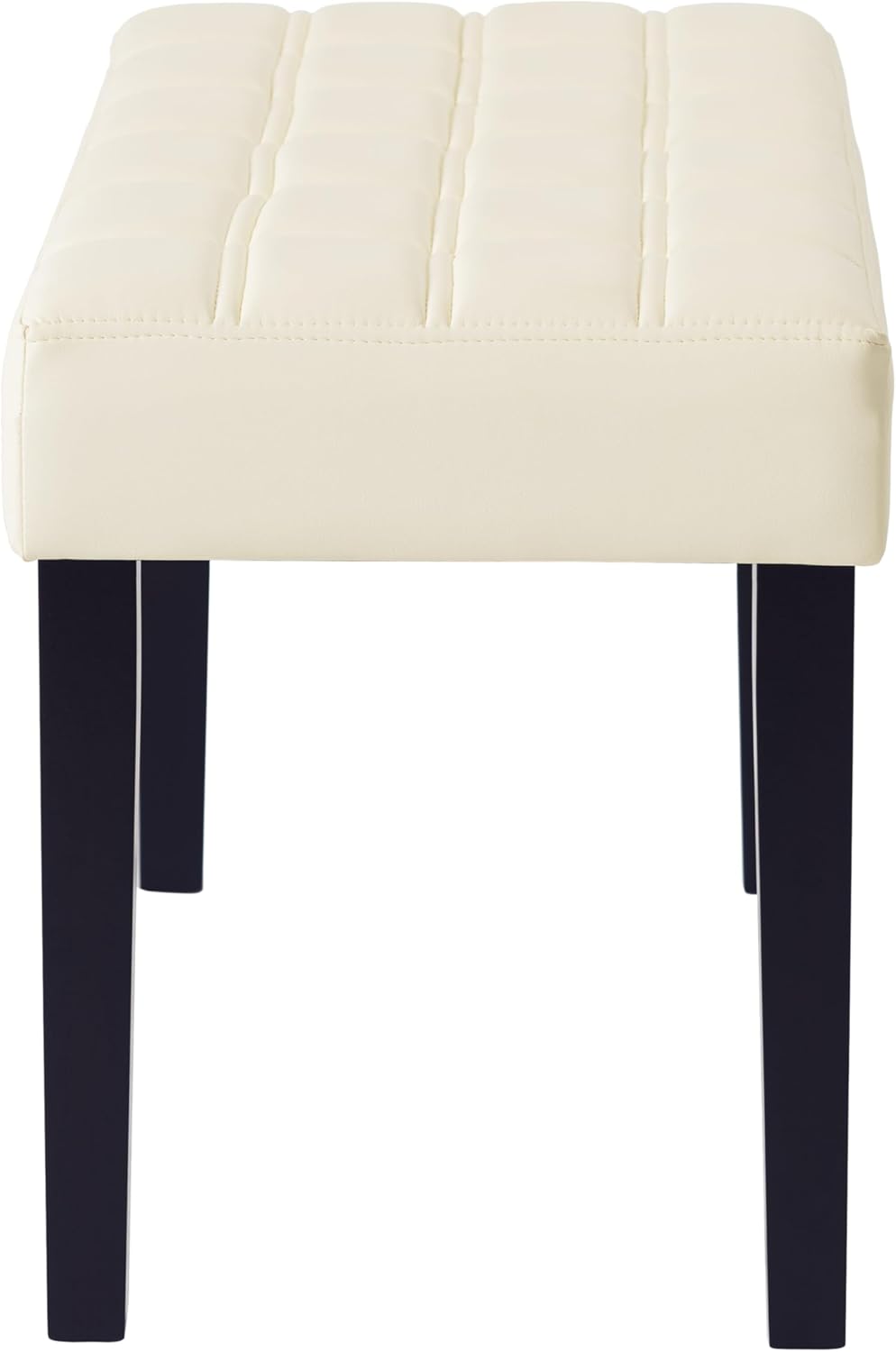 Enjoy this decorative bench from CorLiving which offers plenty of extra seating space for your home. Featuring a foam padded surface finished with top stitching and stylish tufting. This multi-functional seat is easy to wipe clean with a damp cloth providing a practical solution for many areas in your home. The white leatherette is complimented by Dark Espresso stained Parson styled legs and is a great accent piece in any living space.