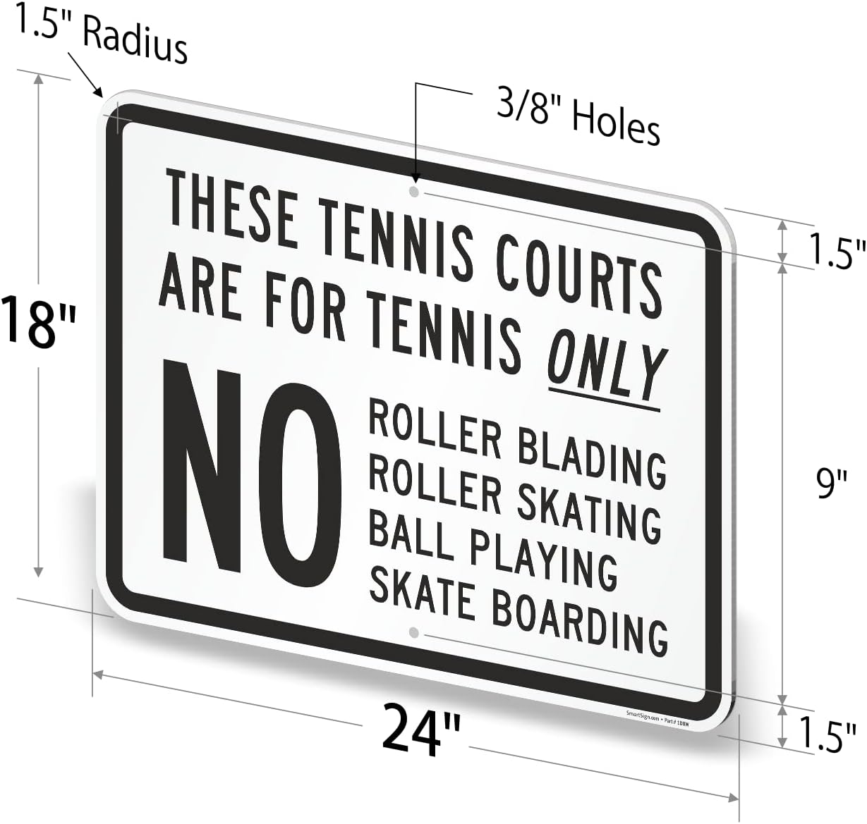 SmartSign 18 x 24 inch “These Tennis Courts Are For Tennis Only - No Roller Blading, No Roller Skating…” Metal Sign, 80 mil Laminated Rustproof Aluminum, Black and White
